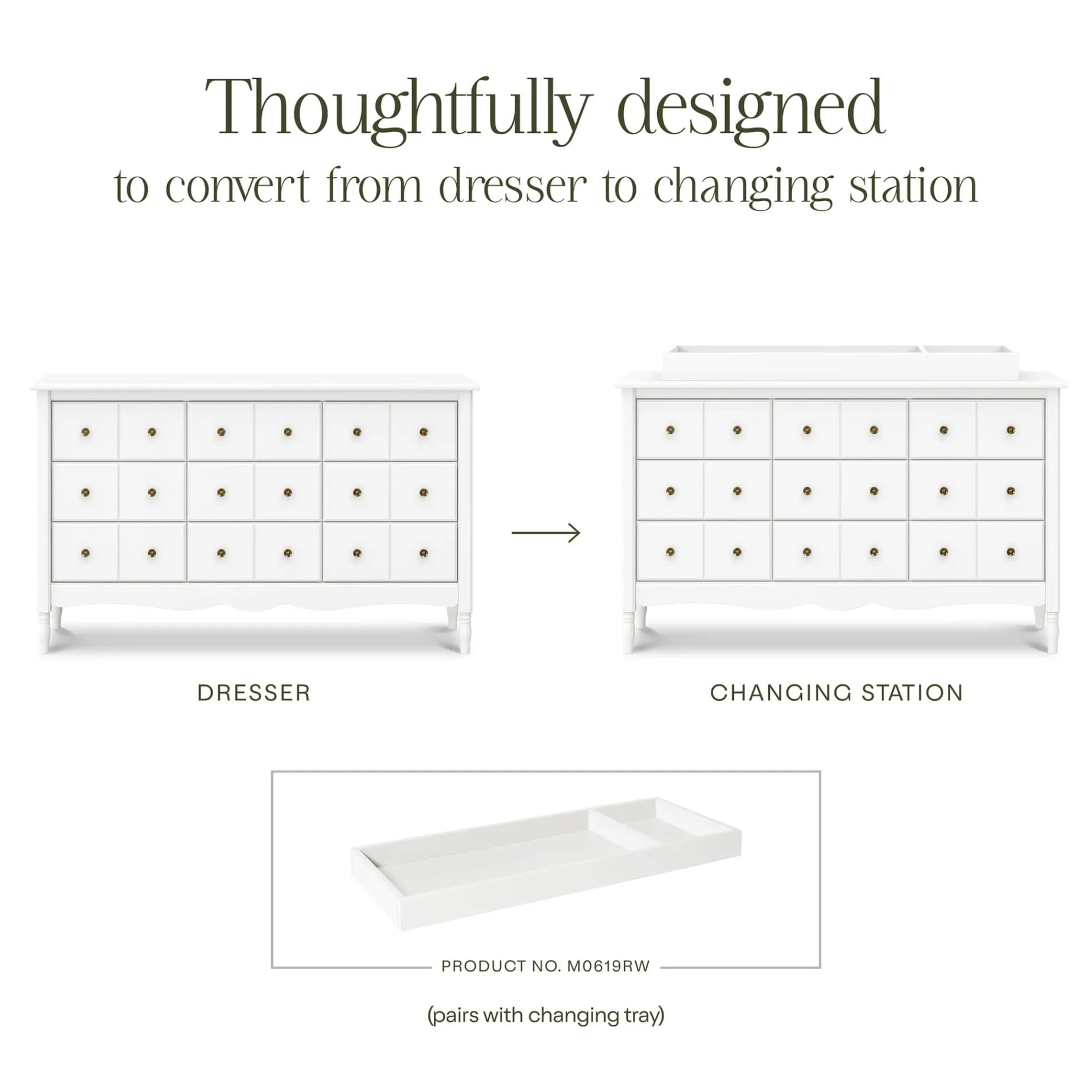 SPACIOUS & DURABLE: Features nine drawers, each extending over 9 inches for deeper reach, easier access, and better organization. VERSATILE DESIGN: From nursery changing table to playroom storage this dresser seamlessly transitions as your family grows. Available matching, removable changing tray sold separately (M0619). SMOOTH & SECURE GLIDE: Premium ball bearing drawer glides make opening and closing drawers easy and safe. Anti-tip kit included for additional security.