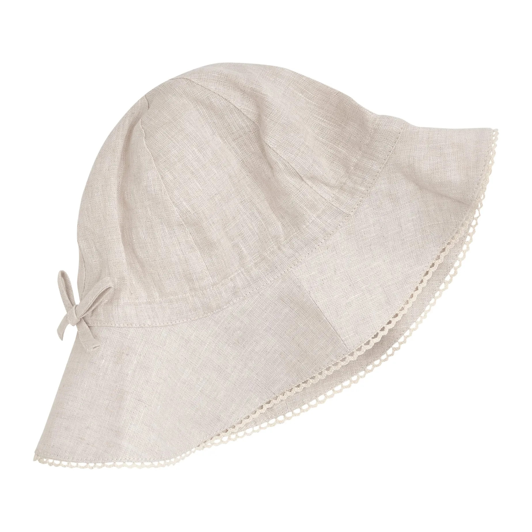 Cute solid-colored sun hat with a beautiful edge from HUTTEliHUT. The hat is made from 100% linen with a solid lining. A cord runs through the middle of the hat, forming a bow at the back and allowing for adjustment to the child’s individual head shape. Extra length at the back. Perfect for providing some shade on a warm summer day. Certified acc. to OEKO-TEX® STANDARD 100 Cert. No. 2276-364 DTI