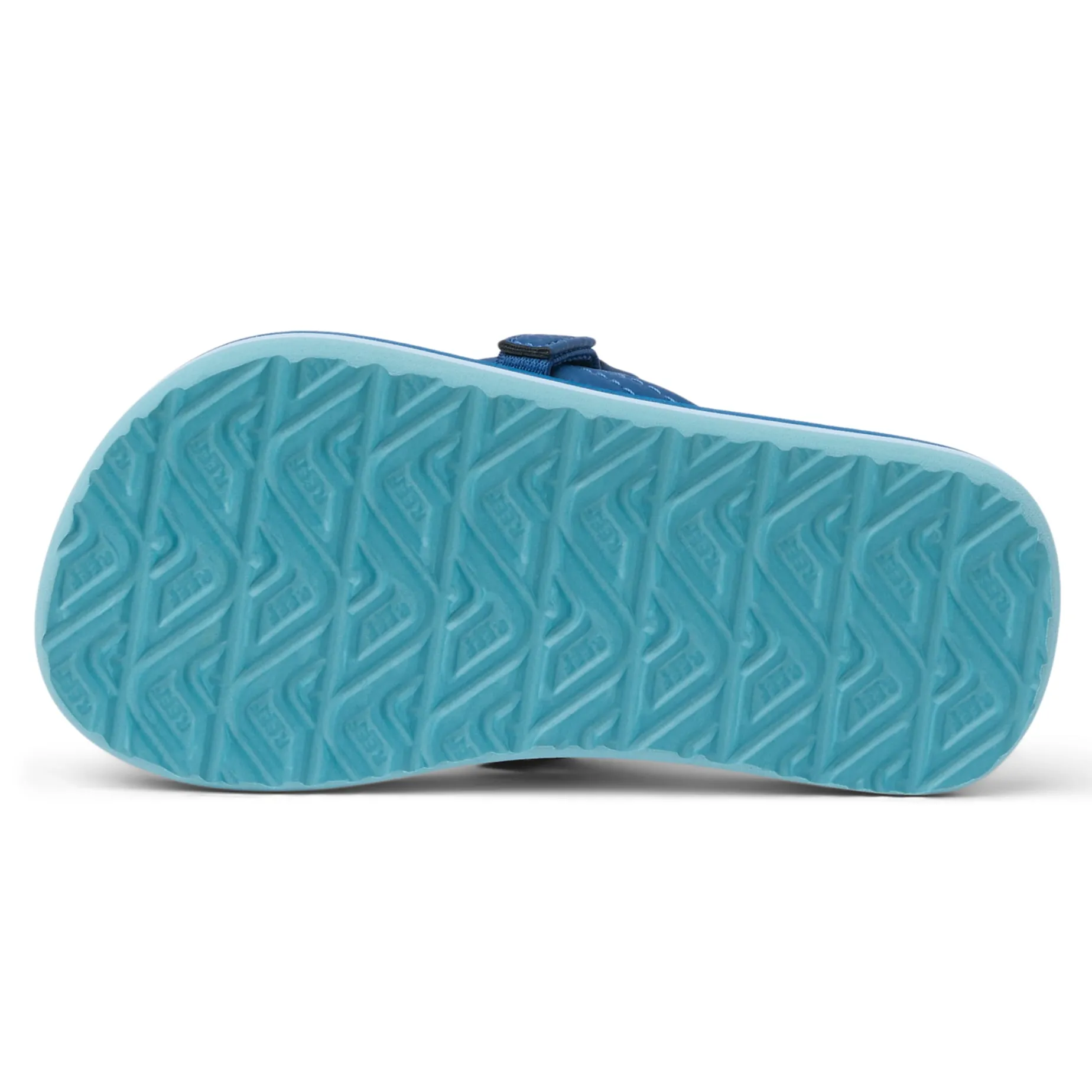 The soft, cushioned EVA features an upper strap to keep little feet in place, with comfortable synthetic straps at the front and back.
