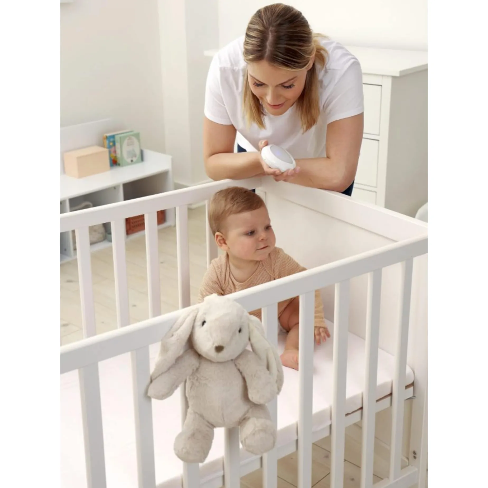 -8 SOOTHING SOUNDS: Choose between heartbeat, rain, soft shush, brook or 4 calming lullabies.