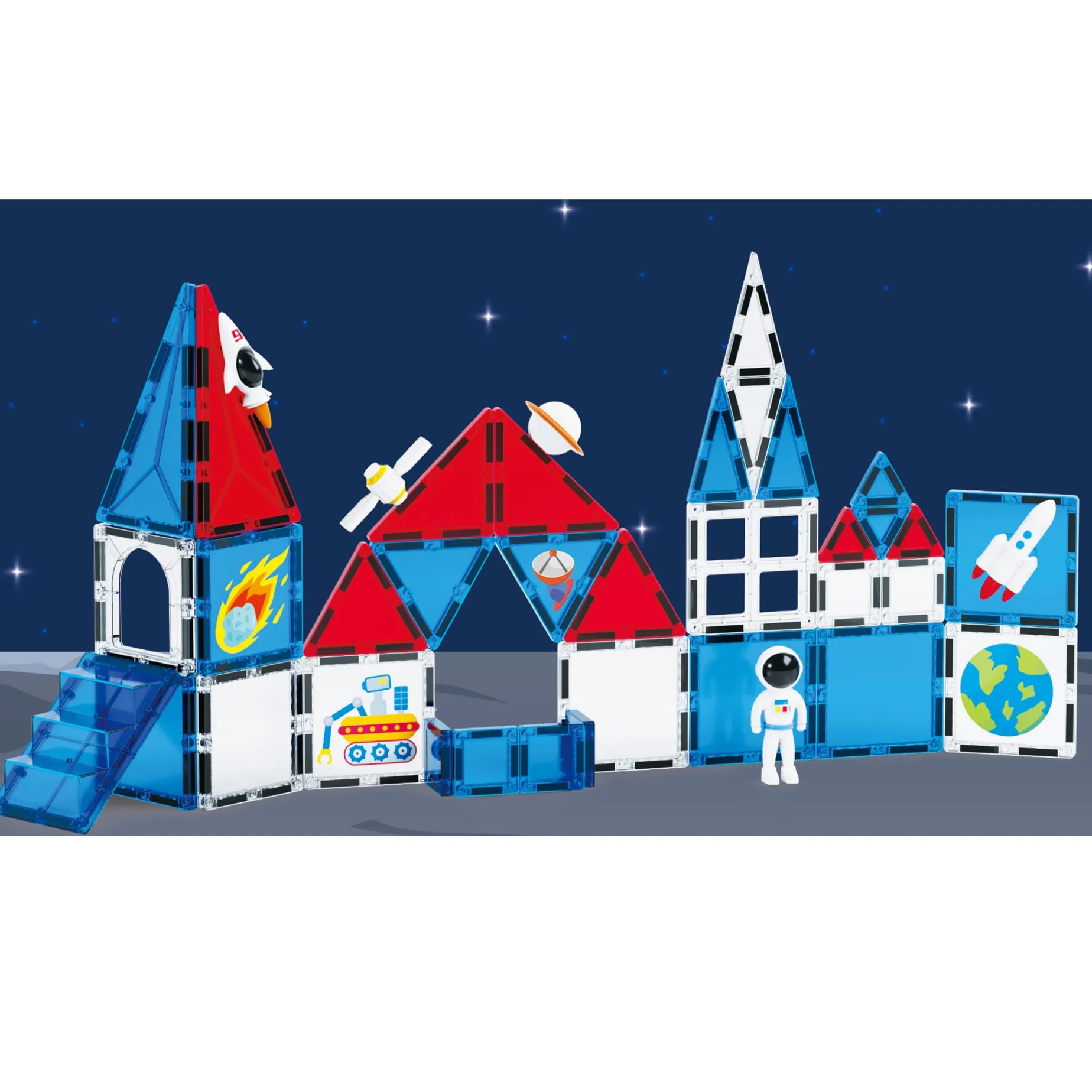 Blast off into outer space with this space-themed magnetic tile set! Kids can build rockets, space stations, and futuristic bases using colorful, easy-to-handle magnetic tiles. While exploring shapes and structures, they develop creativity, logic, and fine motor skills, all while learning through the STEAM approach (Science, Technology, Engineering, Art, and Math).
