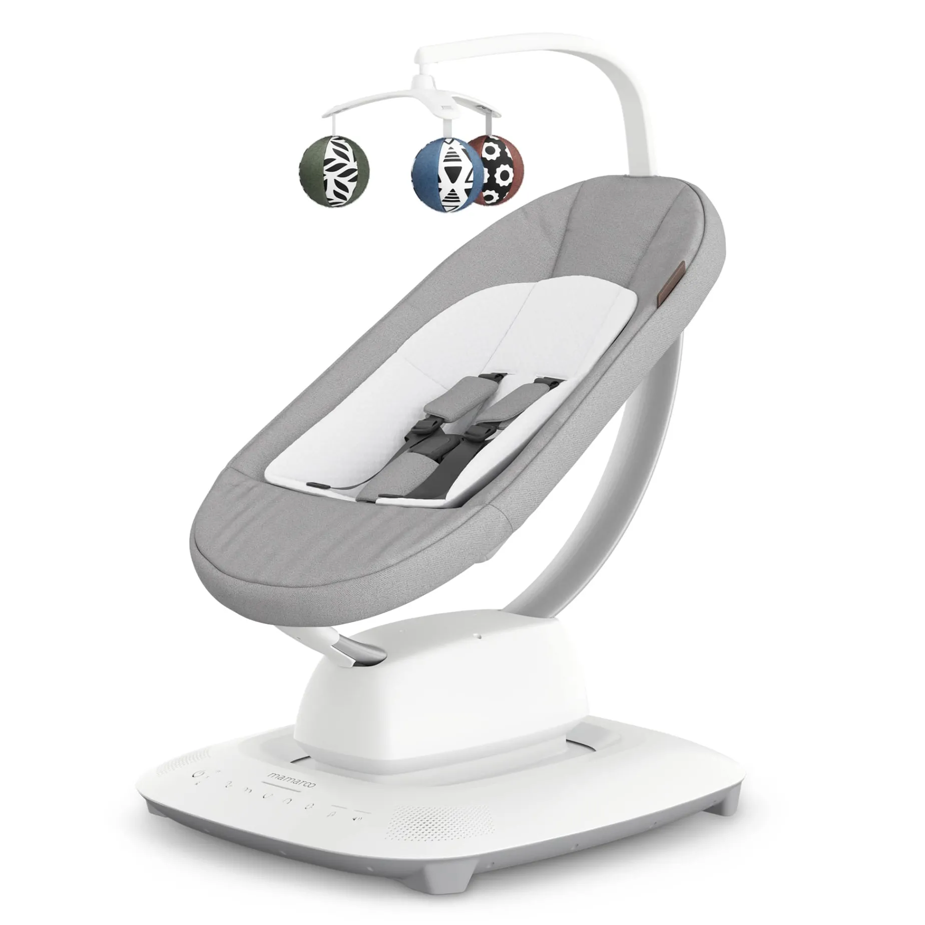 The Mamaroo® swing by UPPAbaby mimics parents’ natural movements to provide a soothing, safe, and comfortable space for baby. With its patented MultiMotion™ technology, it features five unique motions (Cruise, Bounce, Sway, Rock, Wave), four soothing sounds (Jingle, Bliss, Chirp, Tide), and an adjustable recline from 25° to 45°, adapting to your baby’s needs from birth up to 9 months (or 11.3 kg).