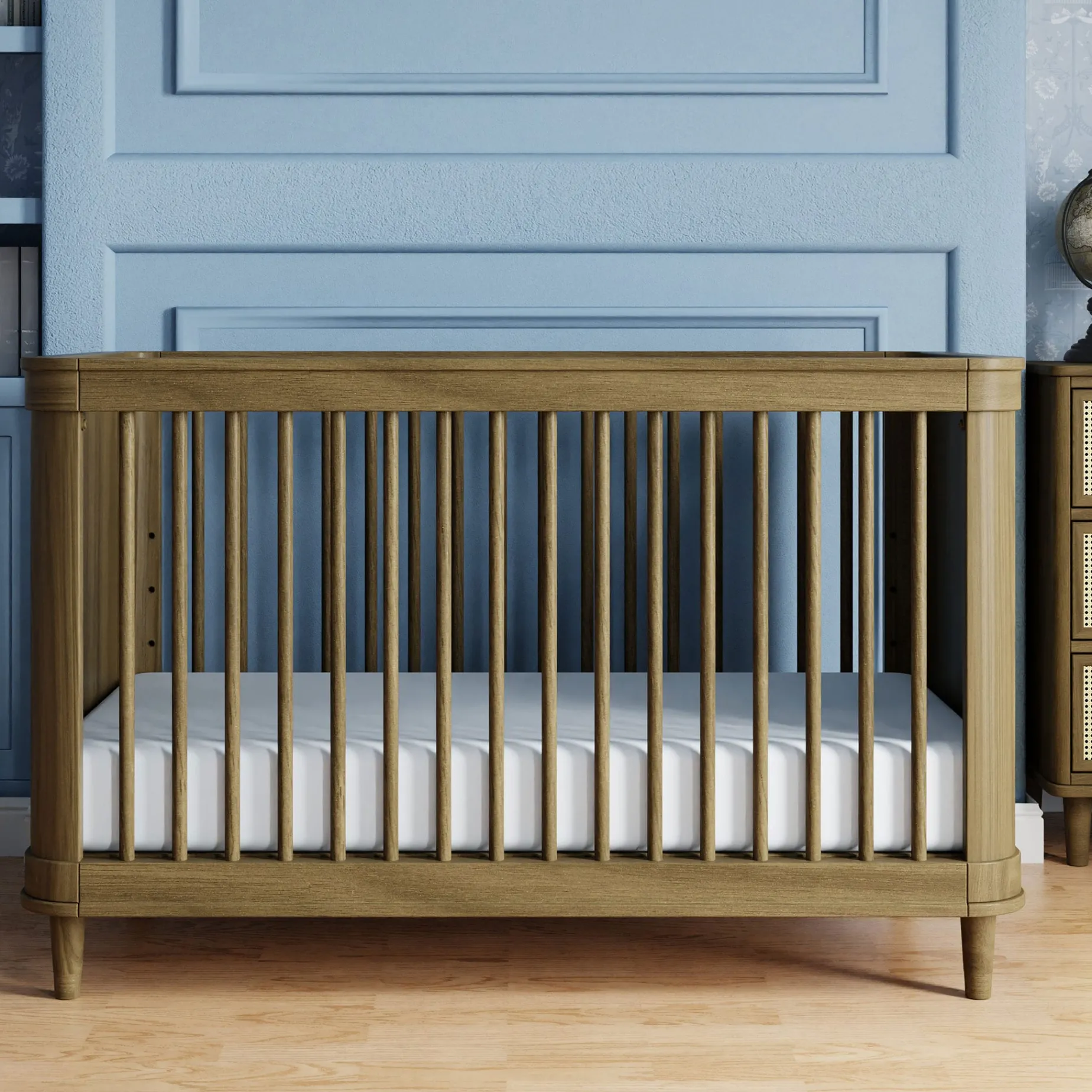 Ease into contemporary style with the Marin 3-in-1 Convertible Crib. Featuring a gently curved silhouette with solid rounded cane side panels, the Marin is an effortlessly transitional piece for the home. Crib converts to a toddler bed and daybed, and fits any standard full-size crib mattress. convertible
