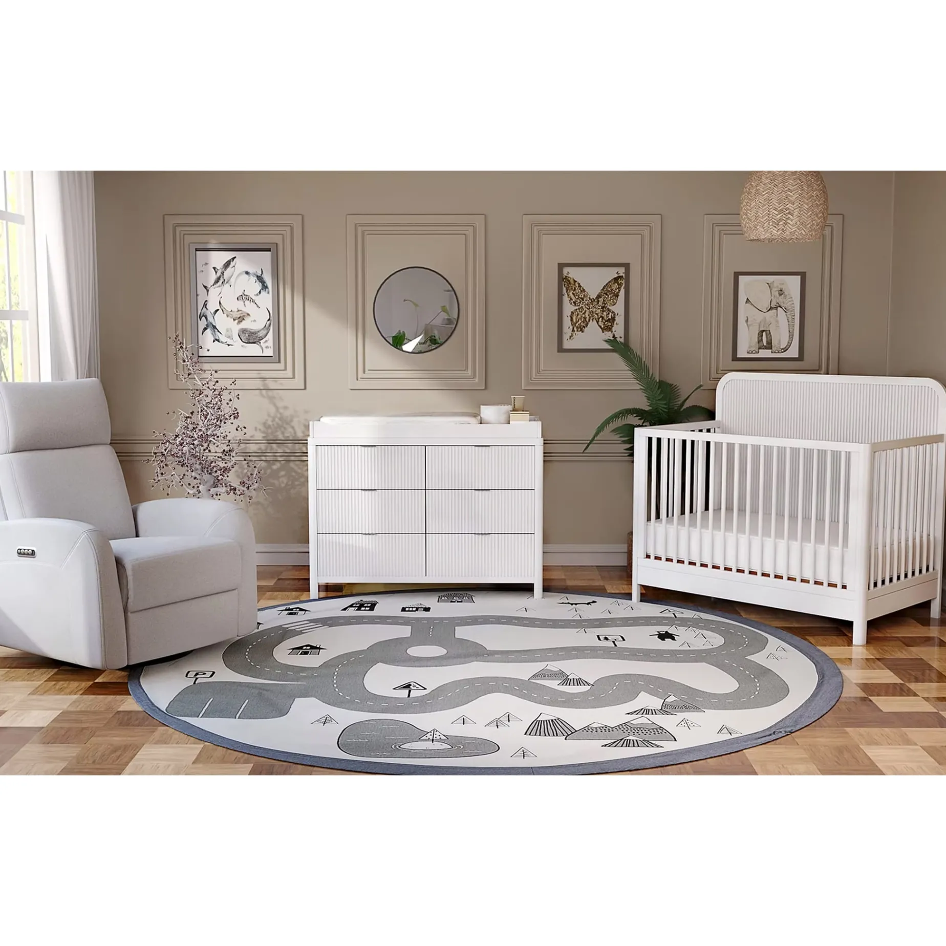 Milano Convertible Crib is a stunning blend of timeless design and modern practicality. Featuring a unique fluted pattern headboard and elegant curved lines this crib is more than just a place for your baby to sleep—it’s a statement piece that adds sophistication to your nursery.