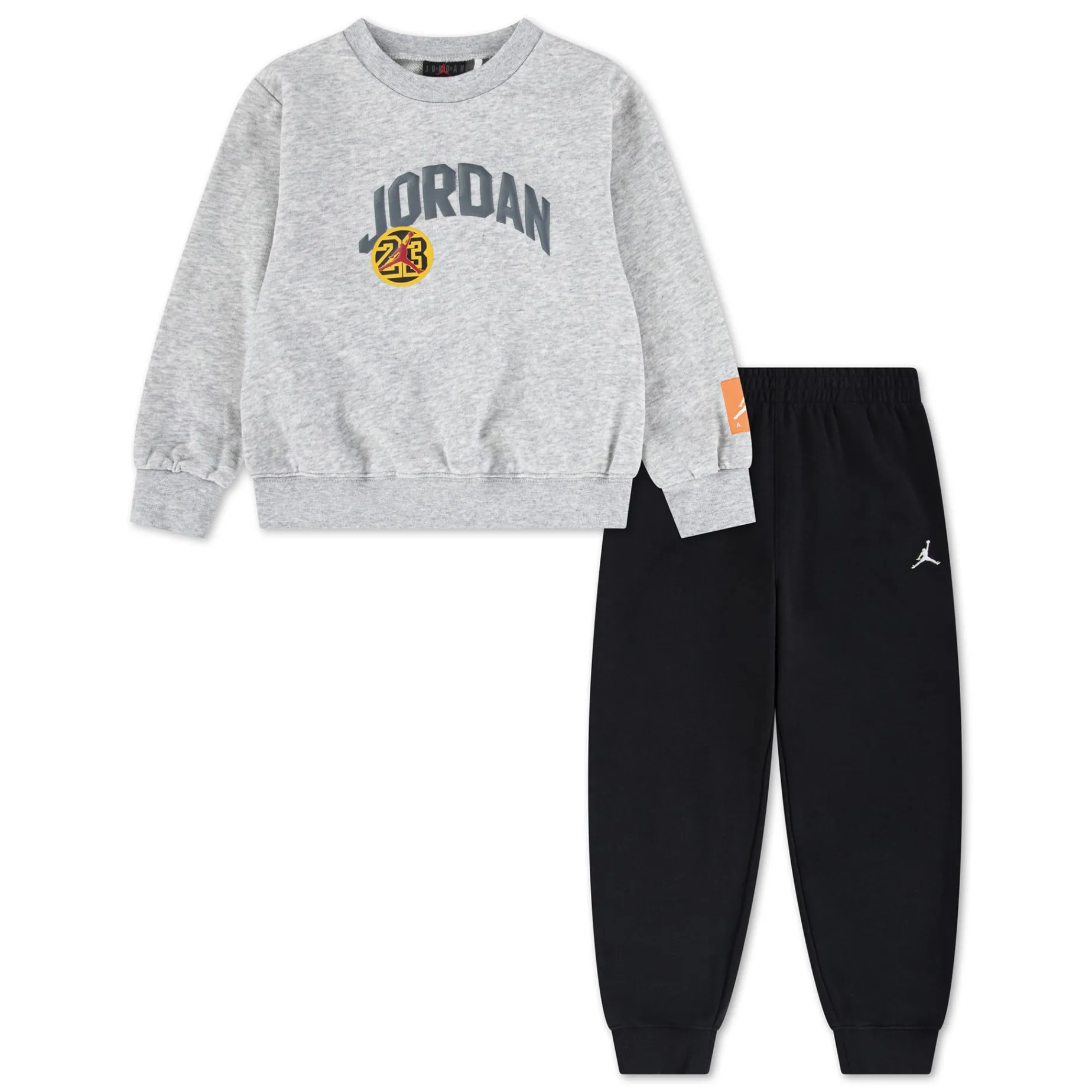Habillez votre petit pour créer sa propre dynastie sportive avec cet ensemble 2 pièces de Jordan, confectionné en molleton français doux qui offre chaleur et confort. Le chandail à col rond présente des boutons-pression sur l’épaule pour un habillage facile, et le pantalon fuselé possède une taille élastique pour un ajustement confortable.