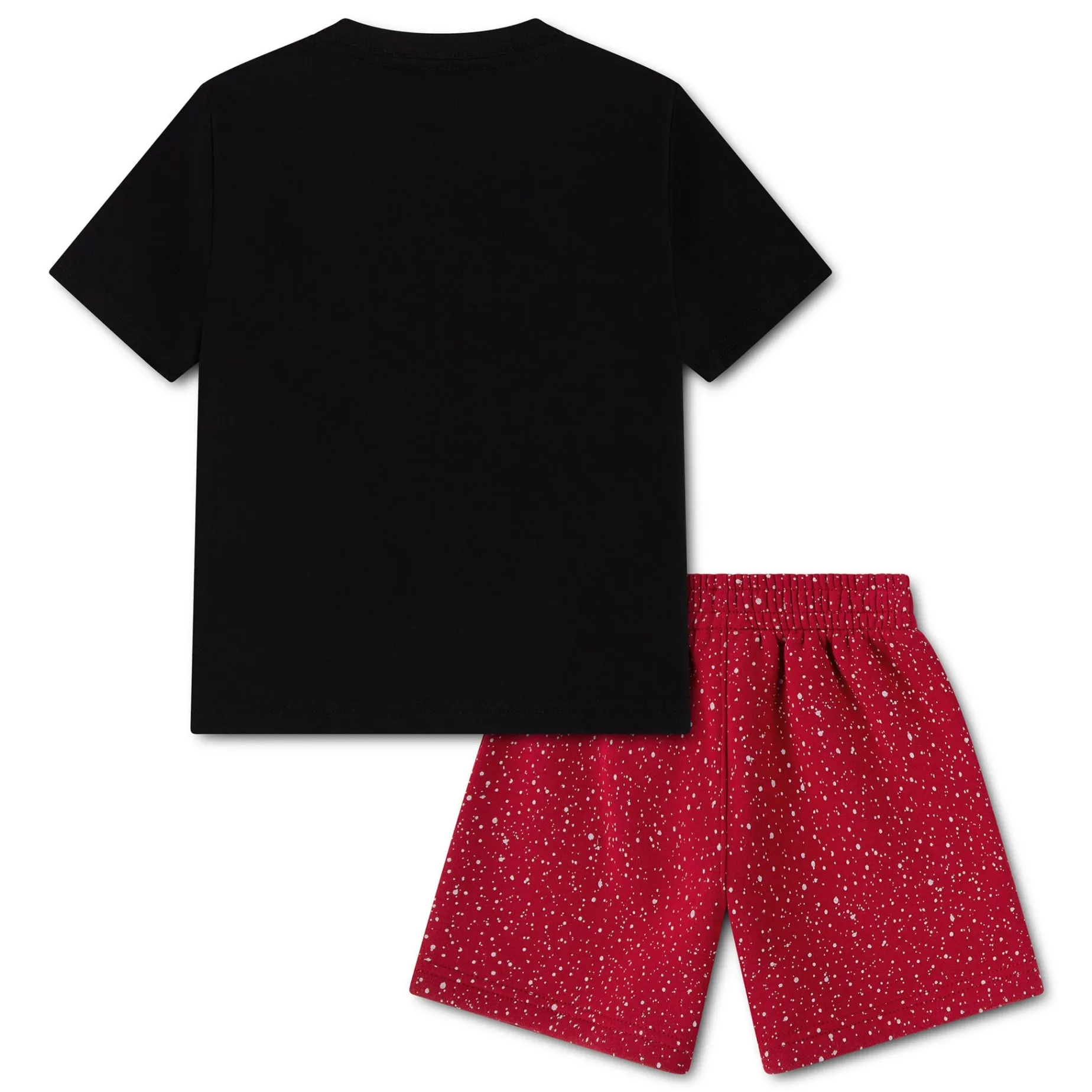 Habillez facilement les jeunes athlètes avec cet ensemble 2 pièces de Jordan. Le t-shirt à coupe standard présente un logo superposé et un col ras-du-cou sans étiquette pour un confort sans tracas, tandis que le pantalon en molleton assorti affiche un motif moucheté intégral et une taille élastique pour un ajustement confortable.