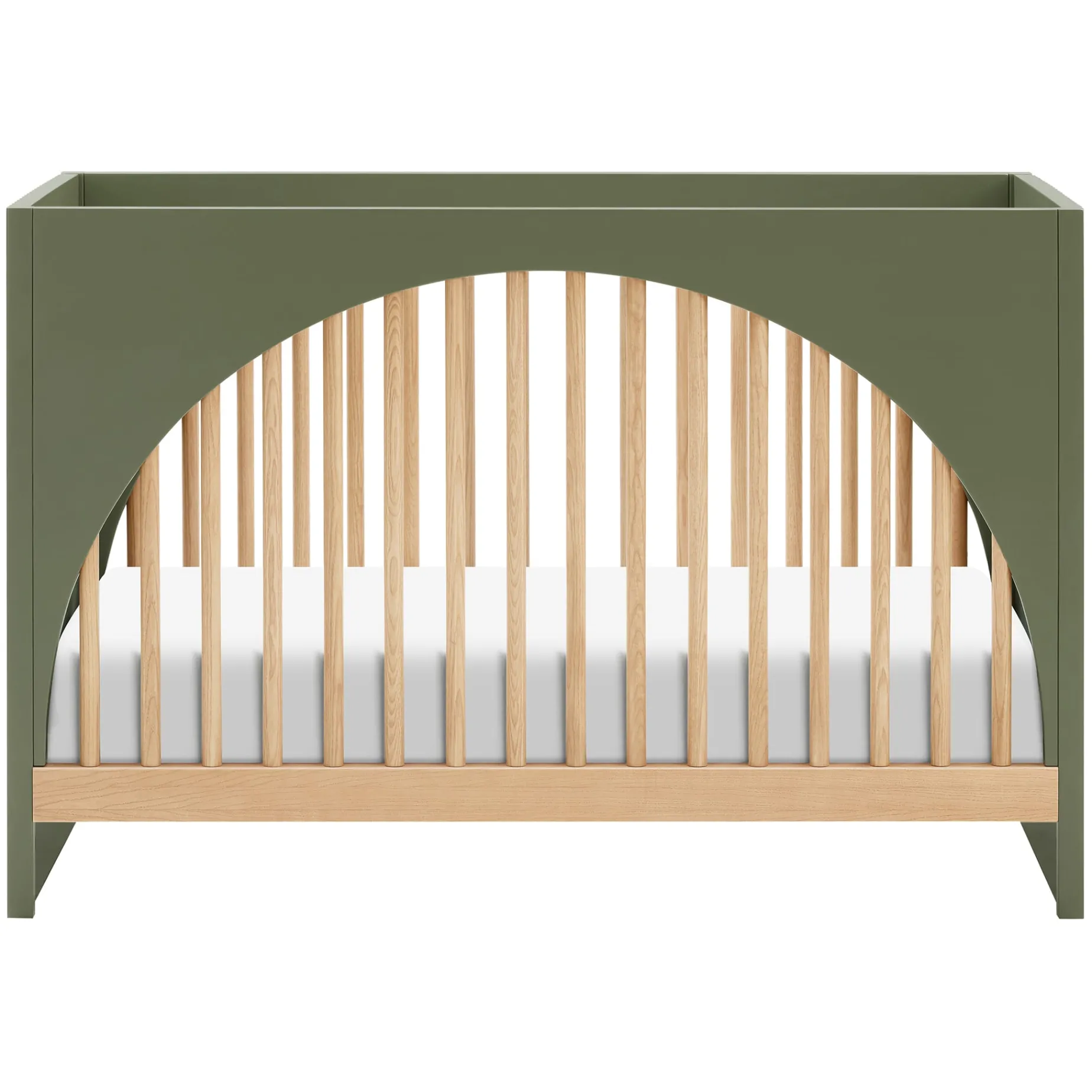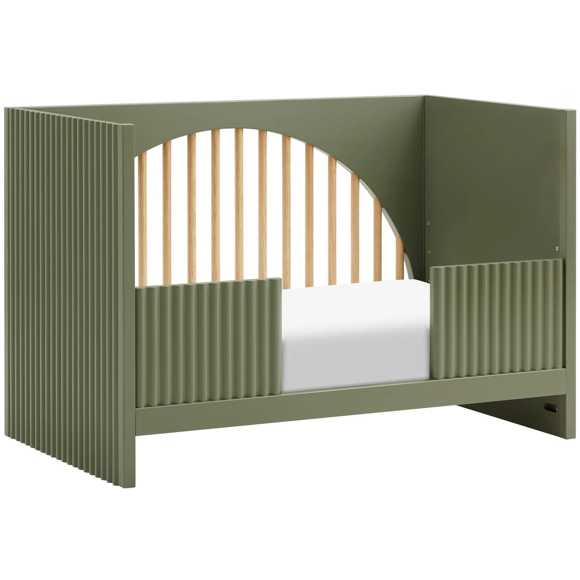 The Moab 3-in-1 Convertible Crib evokes pop art and postmodernism-inspired design with its use of playfully arched front and back panels and modern tambour side paneling. The Moab was designed to grow with your babe, converting from standard crib to toddler bed to daybed. GREENGUARD Gold certified and finished with non-toxic paint and stain, the Moab is a safe and sustainable choice for any nursery.