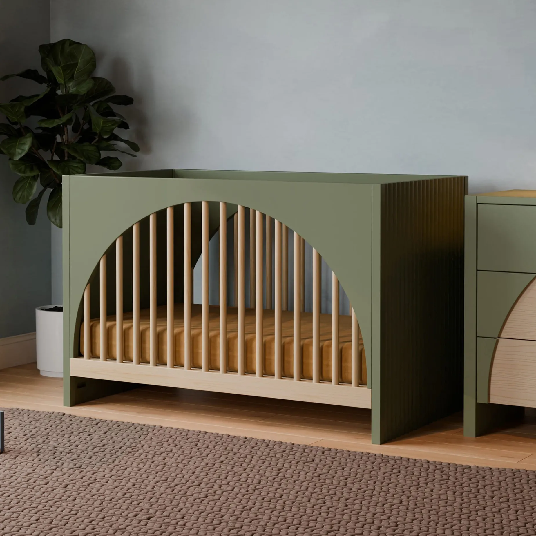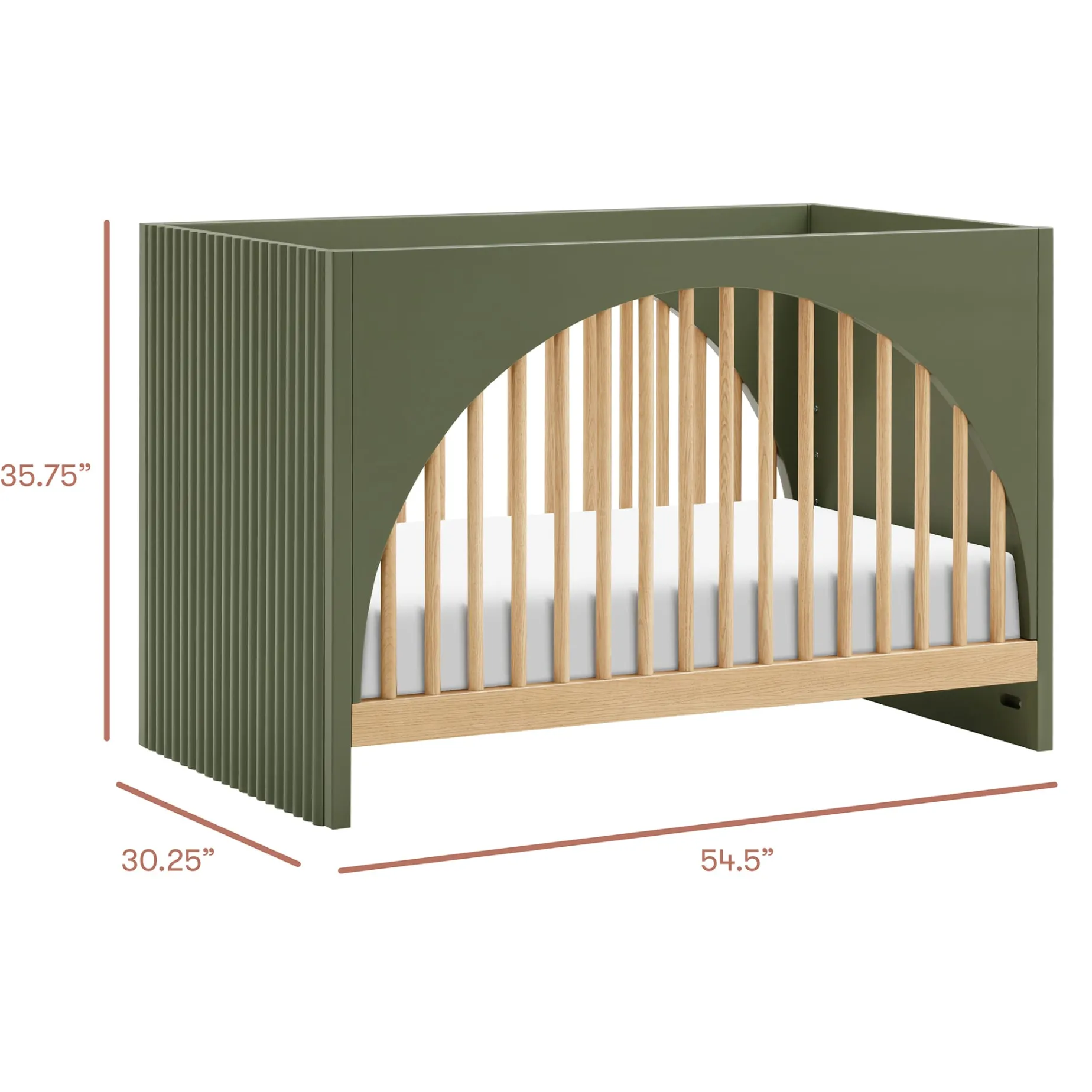 DESIGN INSPIRED BY ART: With its arched front and back panels and distinctive tambour side paneling, the Moab pays homage to pop art and postmodern design, making it a stylish and sculptural piece for the modern nursery. Our hidden hardware construction eliminates visible screws on the crib’s exterior for a polished, clean look.