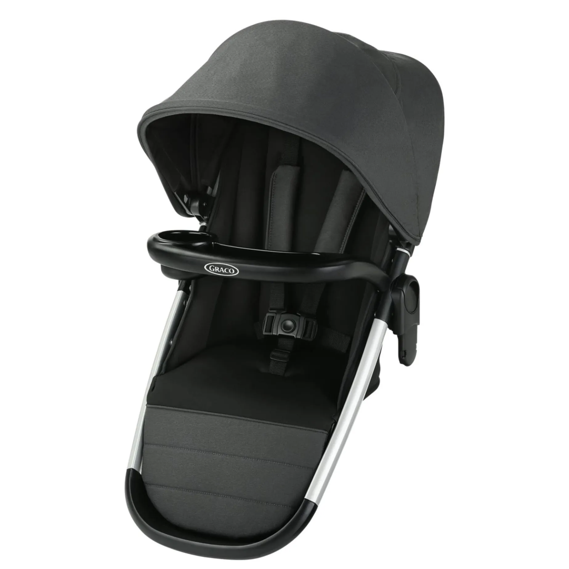 The Graco® Modes™ Nest2Grow™ Stroller Second Seat allows you to expand your Modes™ Nest2Grow™ Stroller or Travel System into a double stroller. No adapters are needed. Streamlined stacked seating provides a similar view for both children and makes getting in and out easier. The seat can be positioned so baby can face you or the world, and can be paired with the stroller in 15 different ways to perfectly suit your family’s needs. The multi-position reclining seat helps keep your little one comfortable. The removable child’s tray with cup holder keeps drinks and snacks within reach, and the canopy has 2 positions for sun protection.