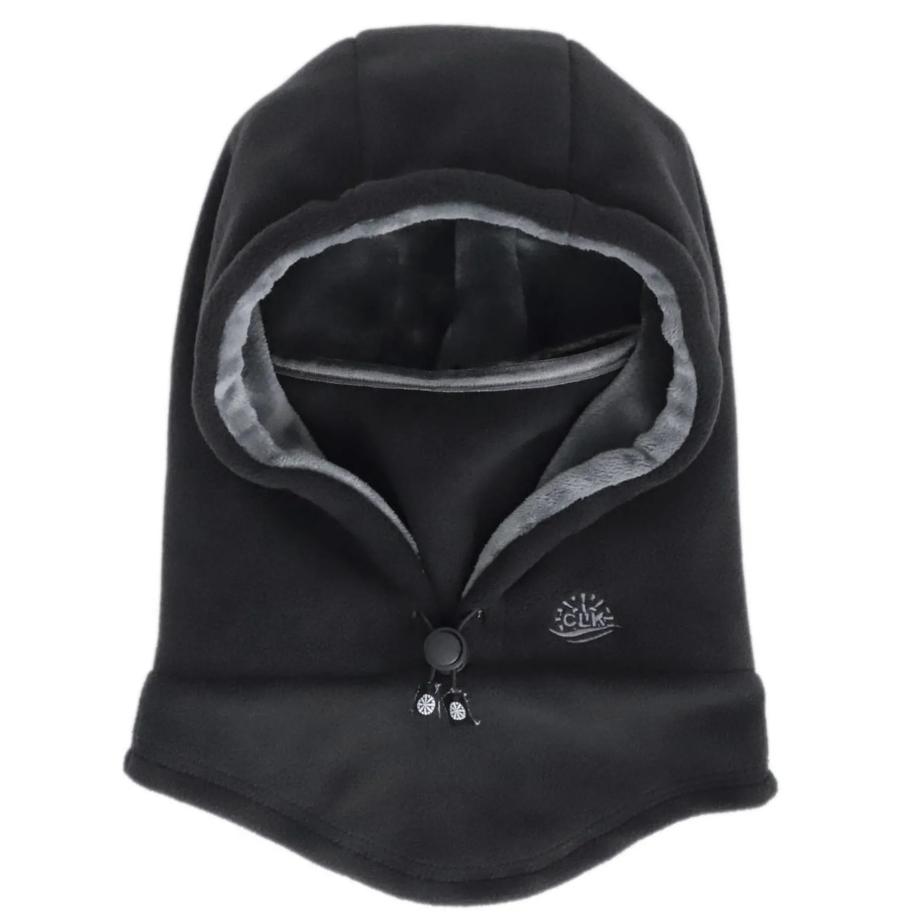 -Adjustable hood around the face with drawstring