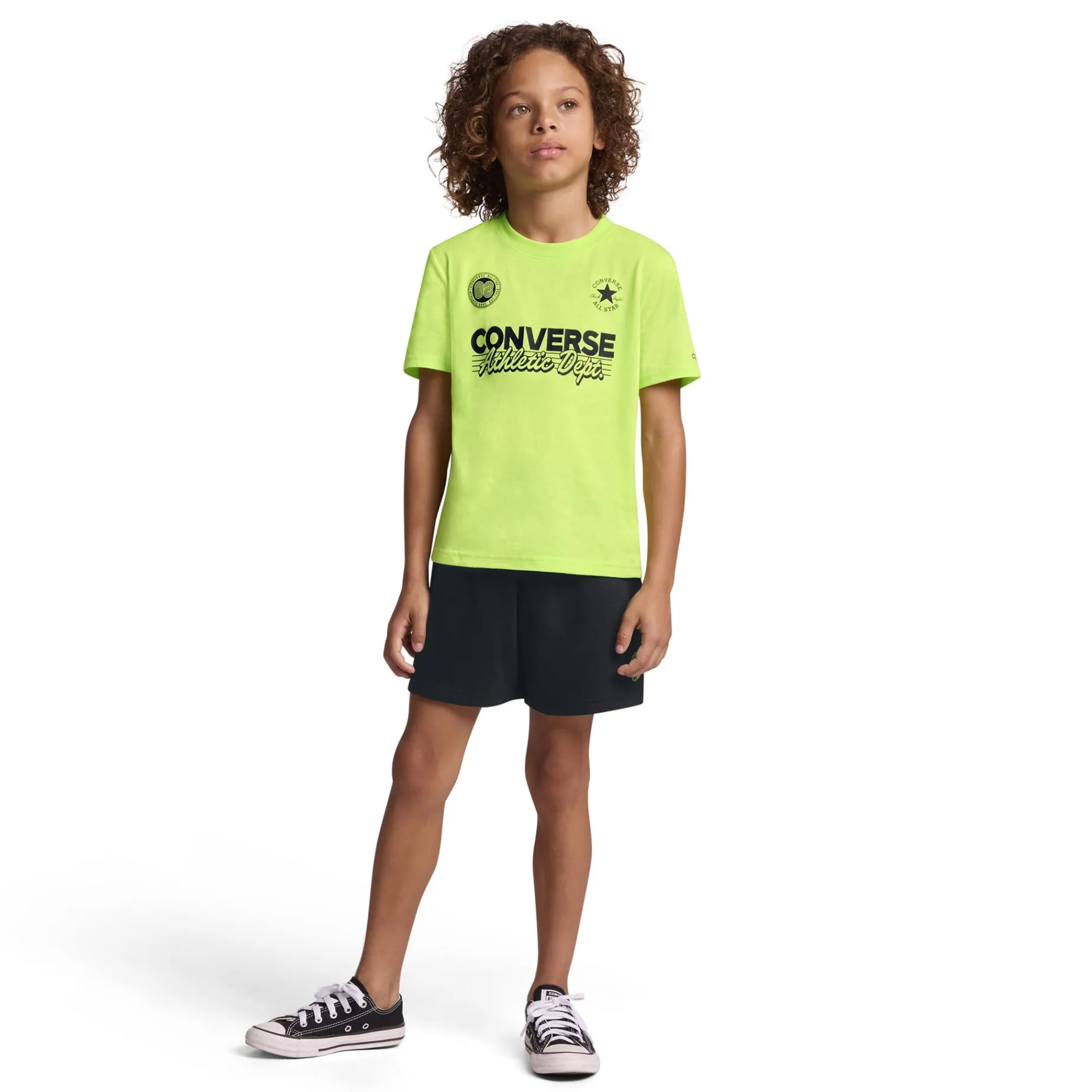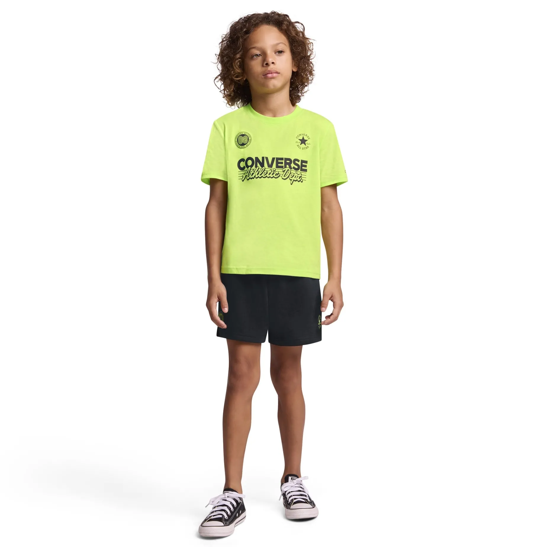 This two-piece set from Converse makes it easy to dress your All Star for play or chill. The standard fit tee features sporty graphics and has room to move, and the shorts are soft and cozy with a stretchy waistband for a comfy fit. Style with your favorite pair of Chucks and you’re ready to go!