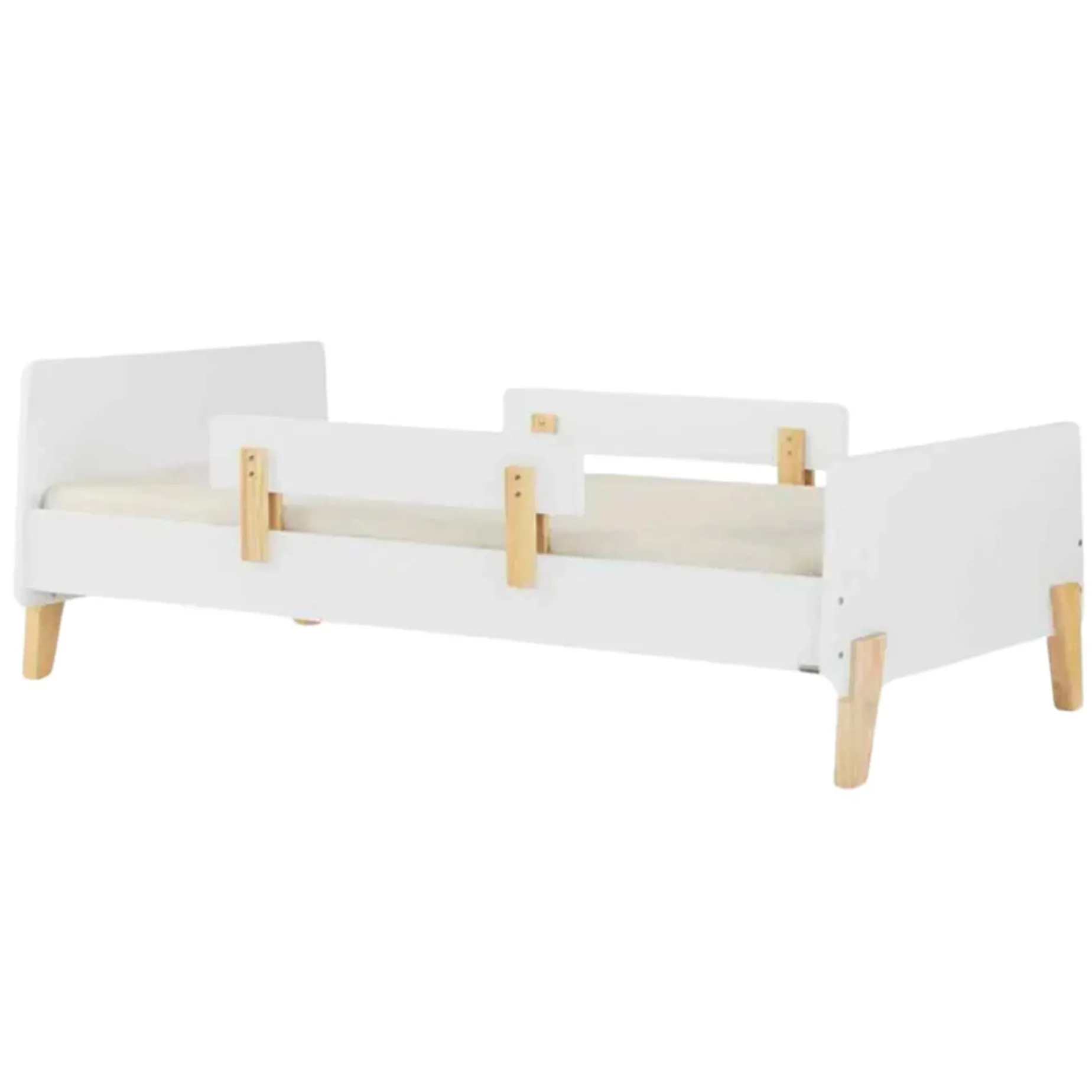 A sturdy bed built just for toddlers with playful curves and modern shapes to smooth the meaningful transition into “a real bed.” The low profile and two removable rails provide a safe and comfortable sleeping place that helps your active toddler easily get in and out of bed.