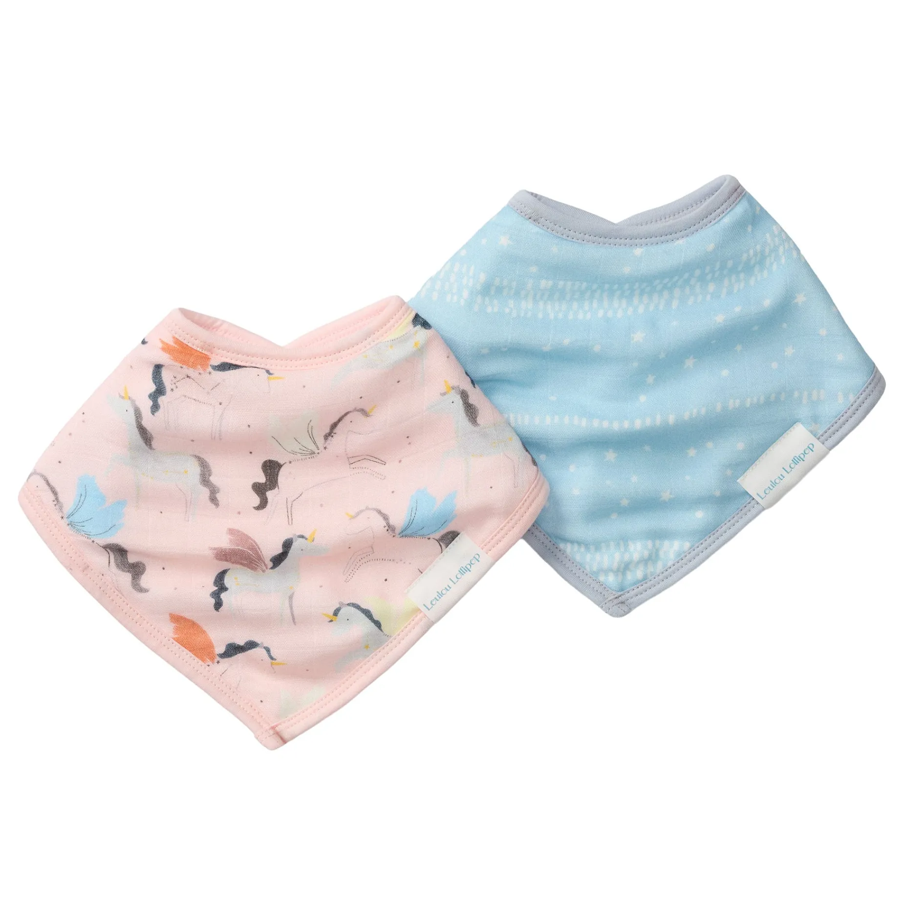Calling all trendy babies! Available in a range of chic prints, these muslin bandana bibs have a super-absorbent terry backing to resist drips and spills. Featuring three nickel-free snaps, they are adjustable to fit babies from 3 to 36 months.