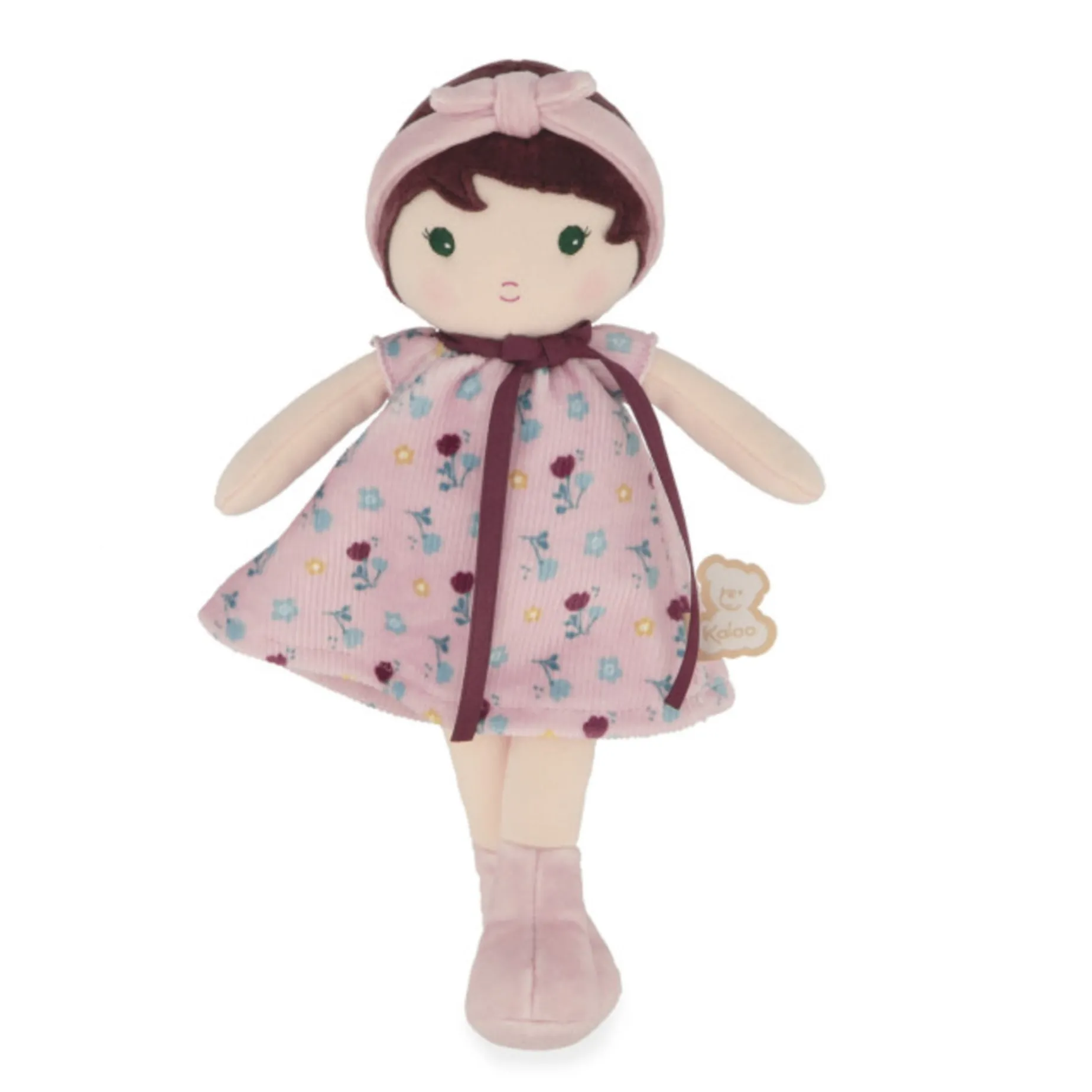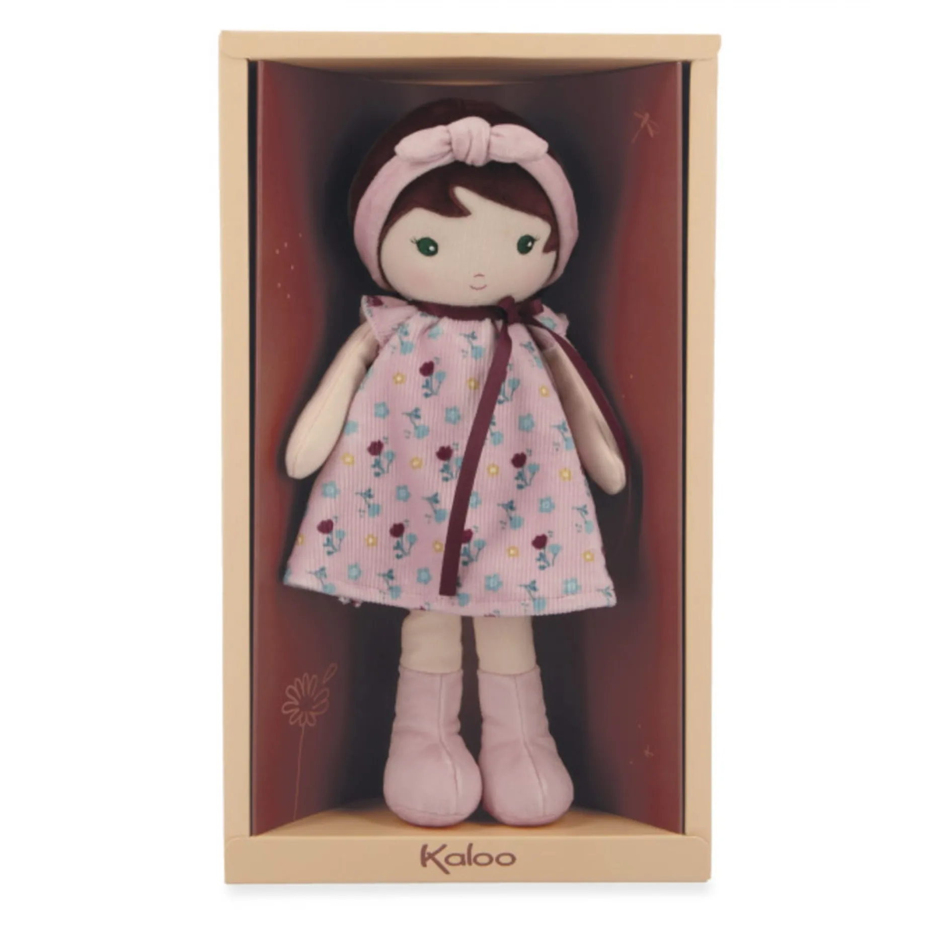Meet Léonie, a fabric doll decorated with floral patterns, in her 25 cm format. Suitable for babies from birth, she is part of the Tendresse doll collection by Kaloo. The Léonie doll wears a sublime dress with floral prints, reflecting her grace and simplicity. Matching her headband, her favorite boots are perfect for running in the grass still damp from the morning dew. Léonie is a little doll who embodies freedom and connection to nature. Very soft, she is perfect for little ones to grab and cuddle. We all love her beautiful green eyes and her elegant ribbon around her neck! To take everywhere to live sweet stories as well as the craziest adventures, she is a friend always ready for cuddles. On the back of this brown doll, you will find a sewn ribbon that allows you to write the name of its little owner. Presented in her pretty box, Léonie is an original birth gift and synonymous with tenderness. She is also perfect as a first doll to stimulate the imagination of little ones.