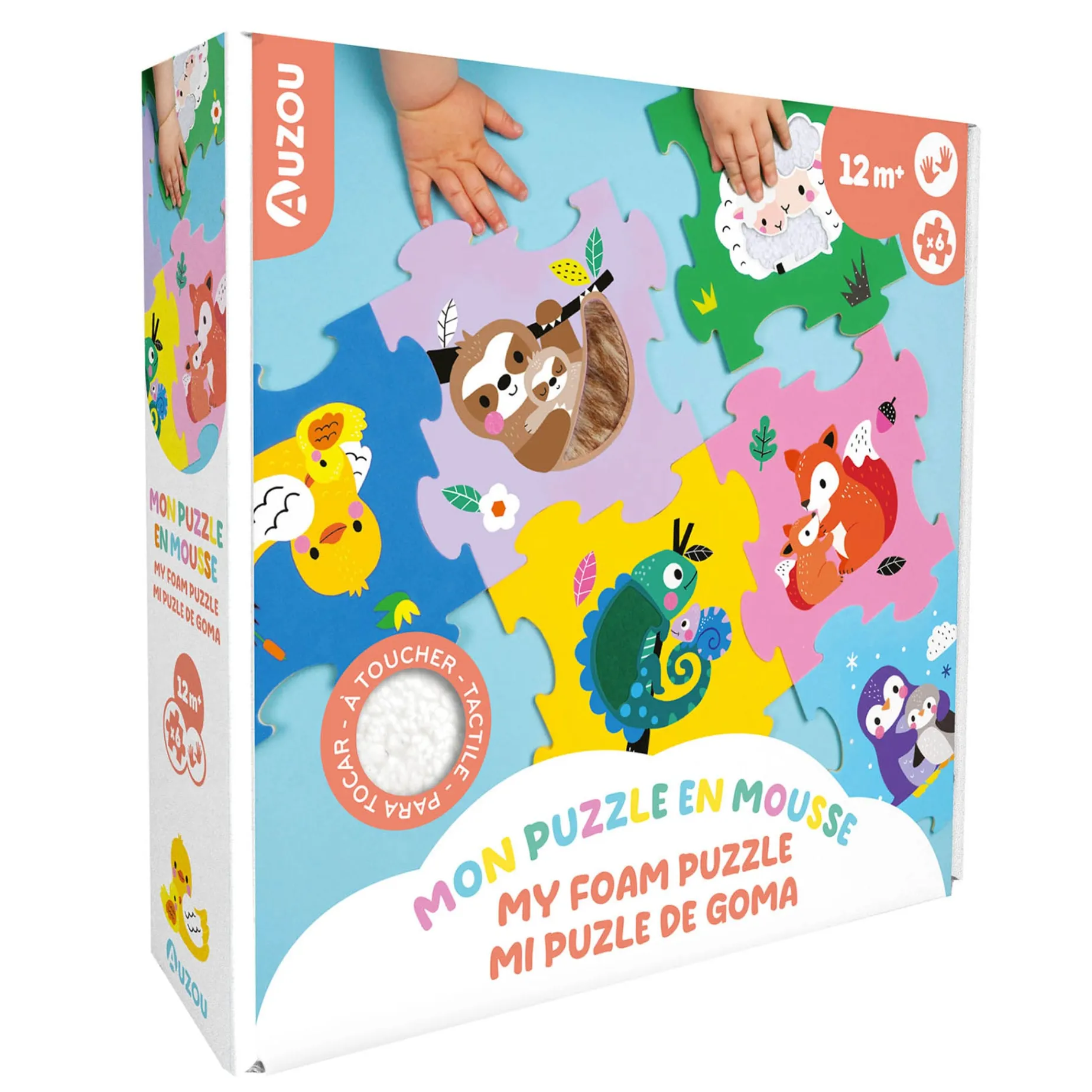 The foam puzzle offers 3 different textures to touch, helping to develop your little one’s sensory awareness. Its 6 large colorful pieces with adorable animals can be assembled in any way the child wants, for endless puzzle fun!
