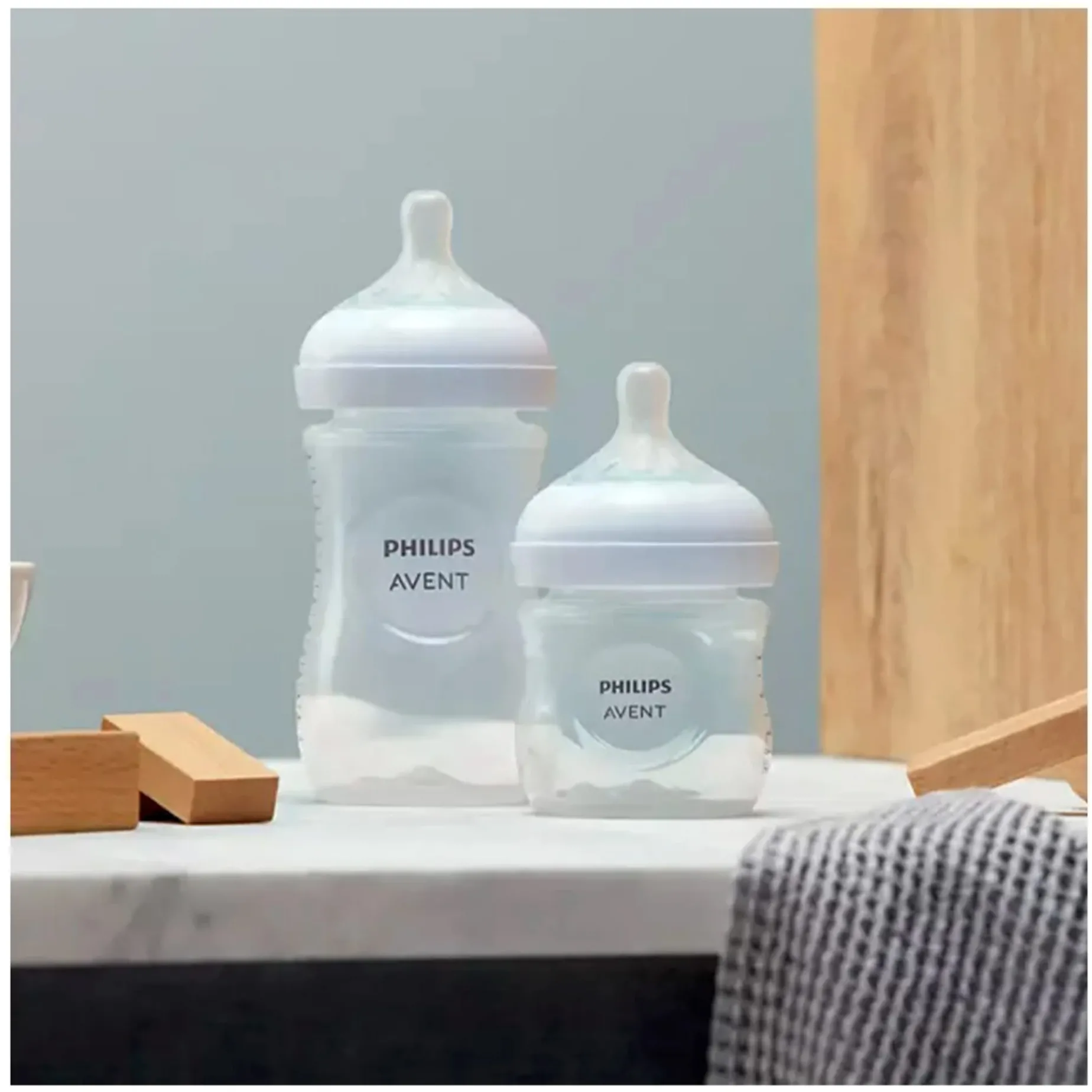 A perfect starter set for new parents. Philips Avent Natural bottles with Natural Response Nipple lets baby control the pace of the milk, like they do when breastfeeding. The nipples’ unique opening and tip only releases milk when baby actively drinks. When pausing to swallow and breathe no milk flows. Baby can drink, swallow, and breathe using their natural rhythm, just like they do when breastfeeding. Â