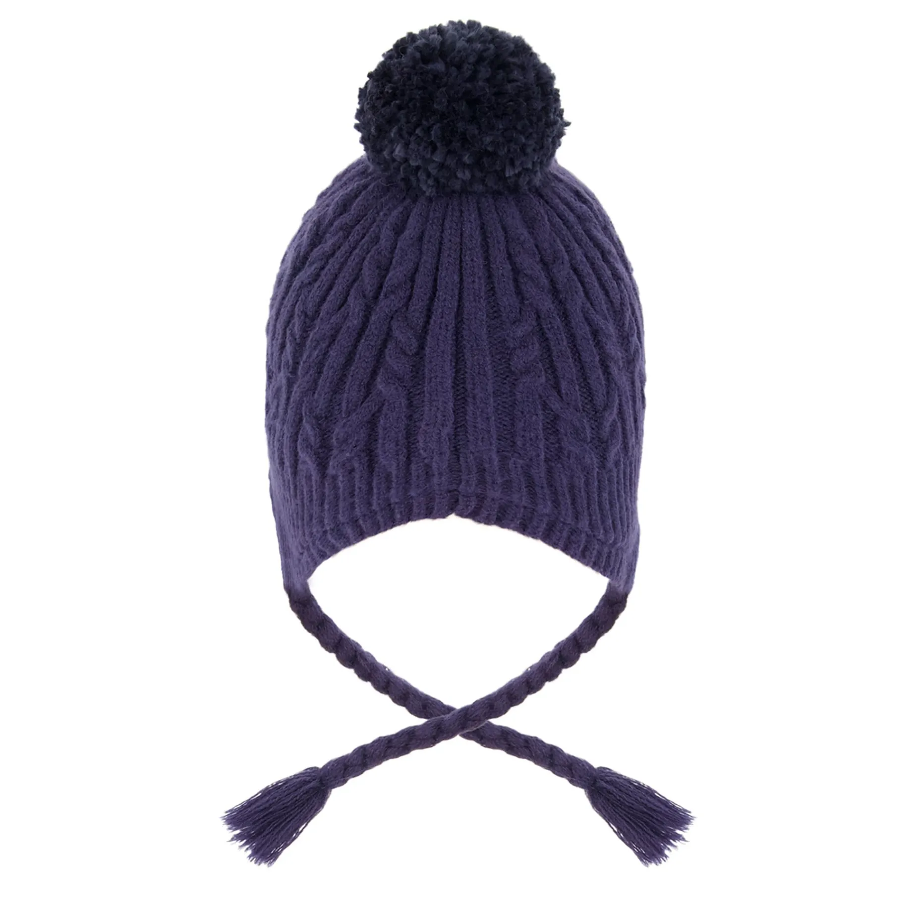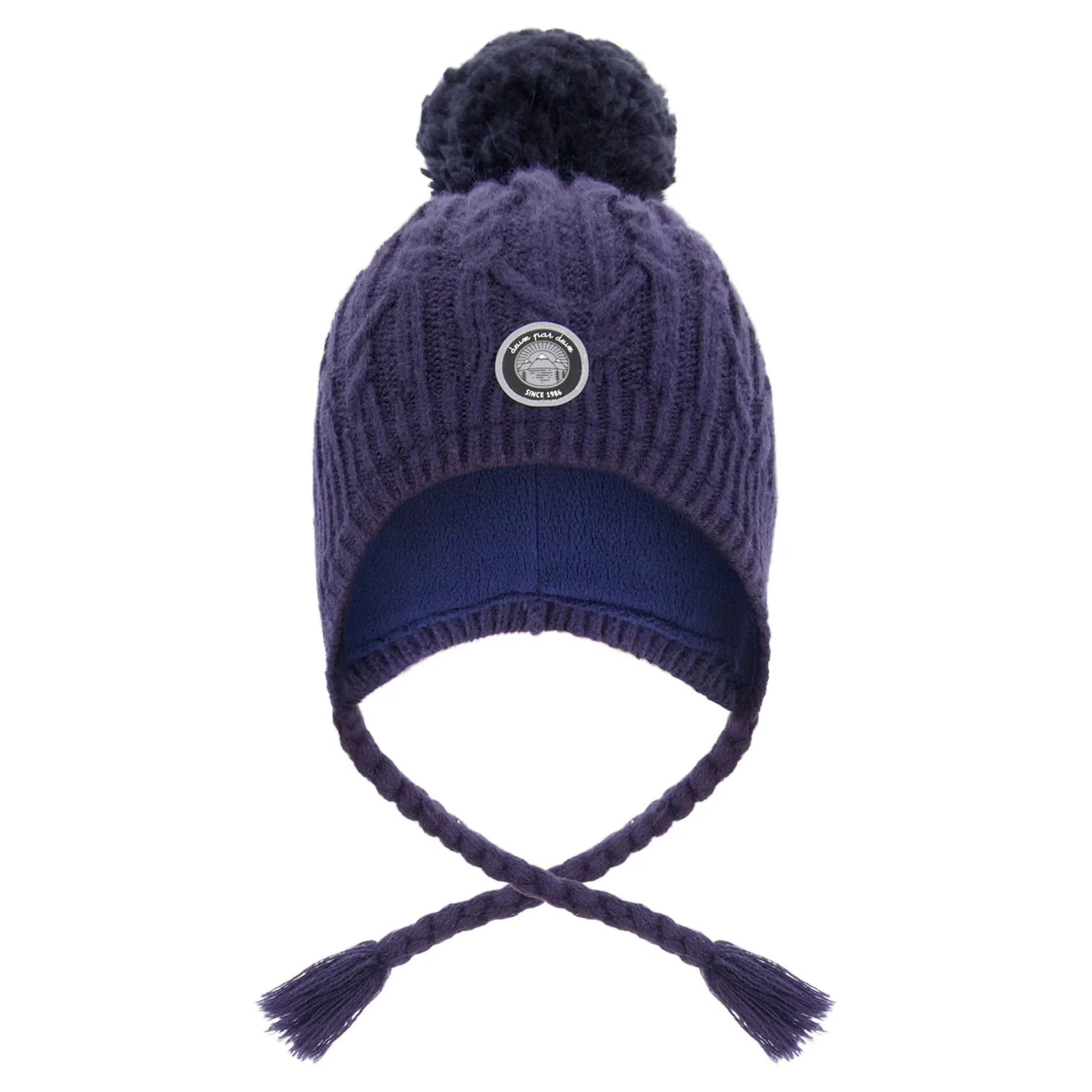 Lined with polar fleece for added warmth, this knit cap in off-white is winter weather-approved. In a Peruvian silhouette with extended side panels that cover and protect the ears, this winter hat features a chunky cable knit texture, braided side tassels, a fluffy pompom, and a logo patch for brand distinction.