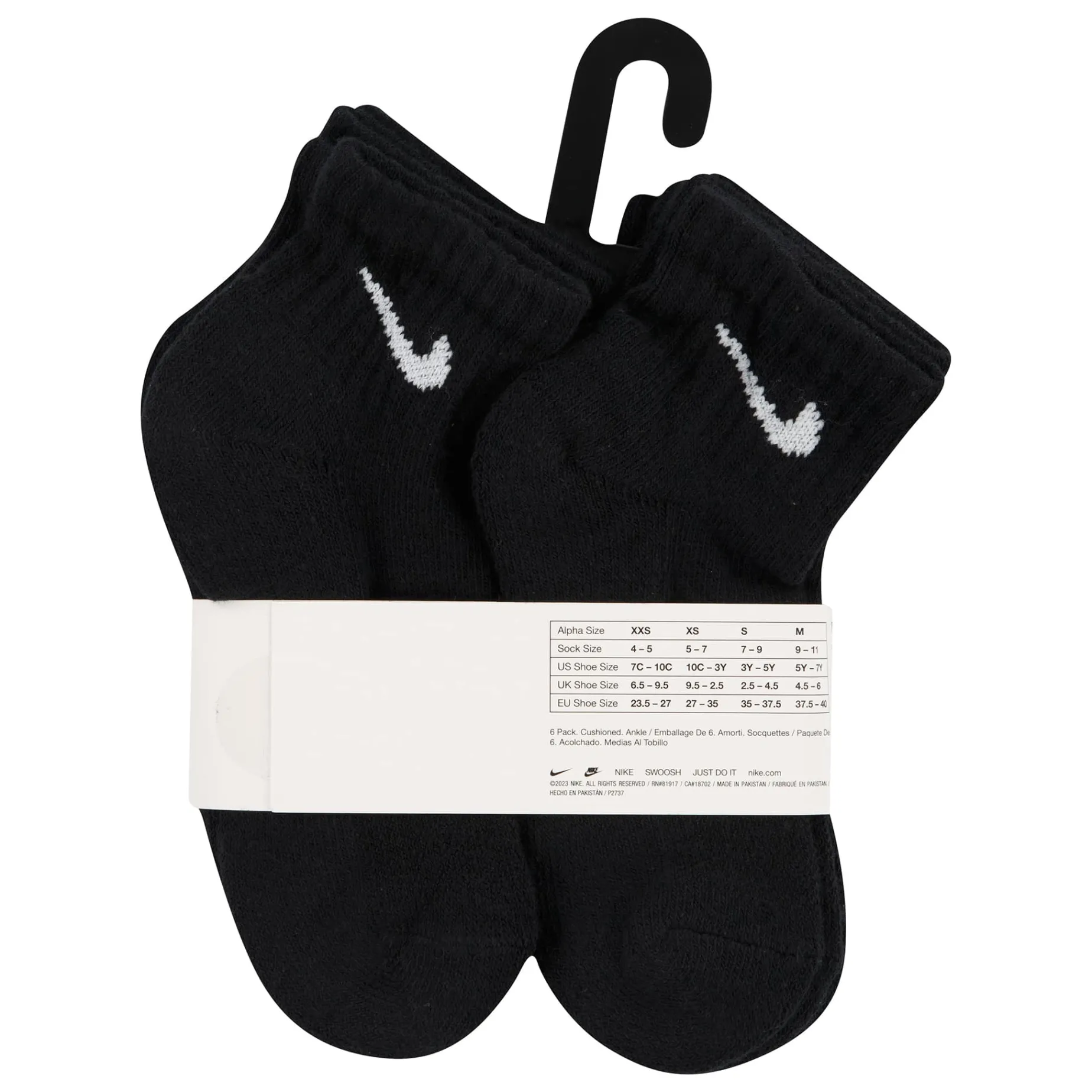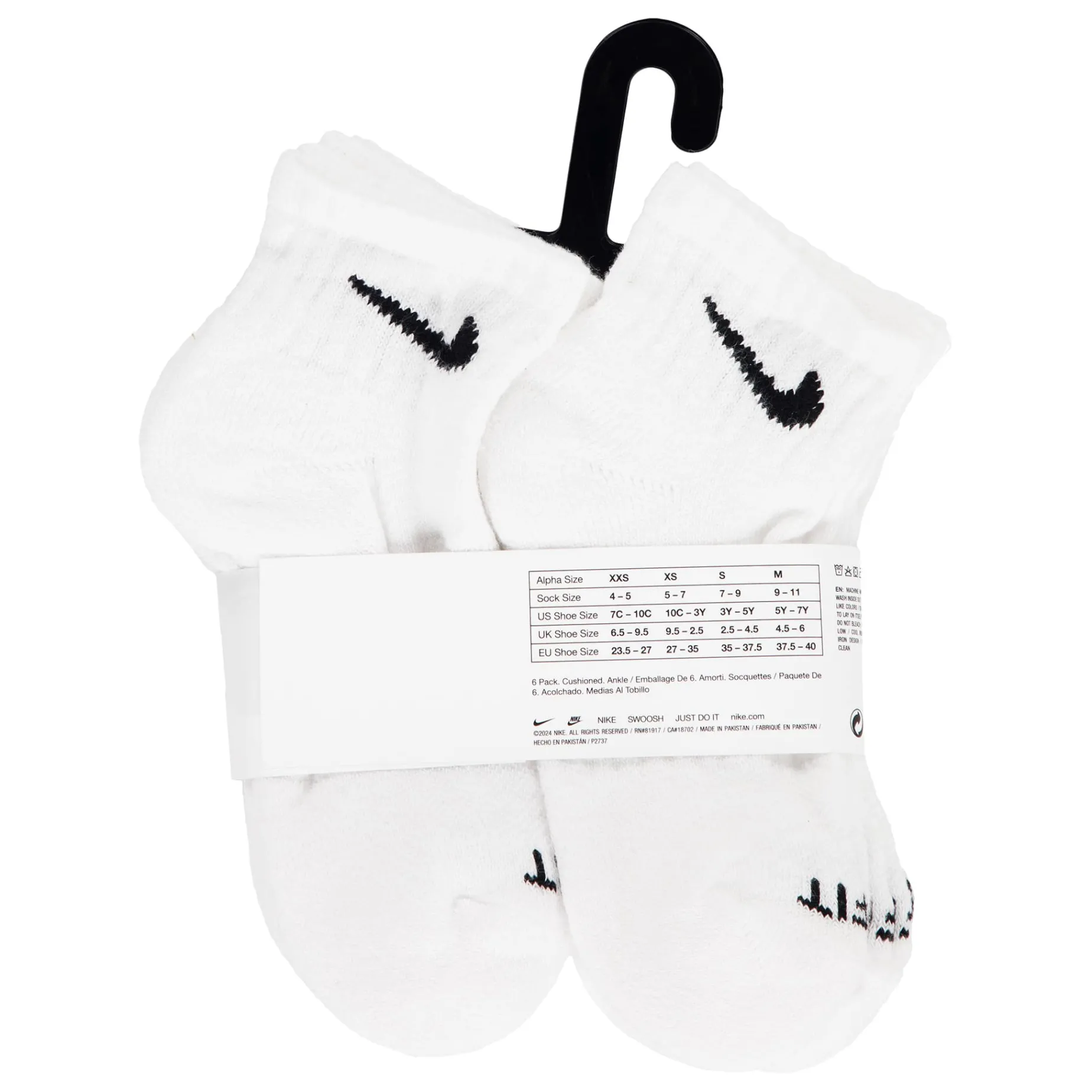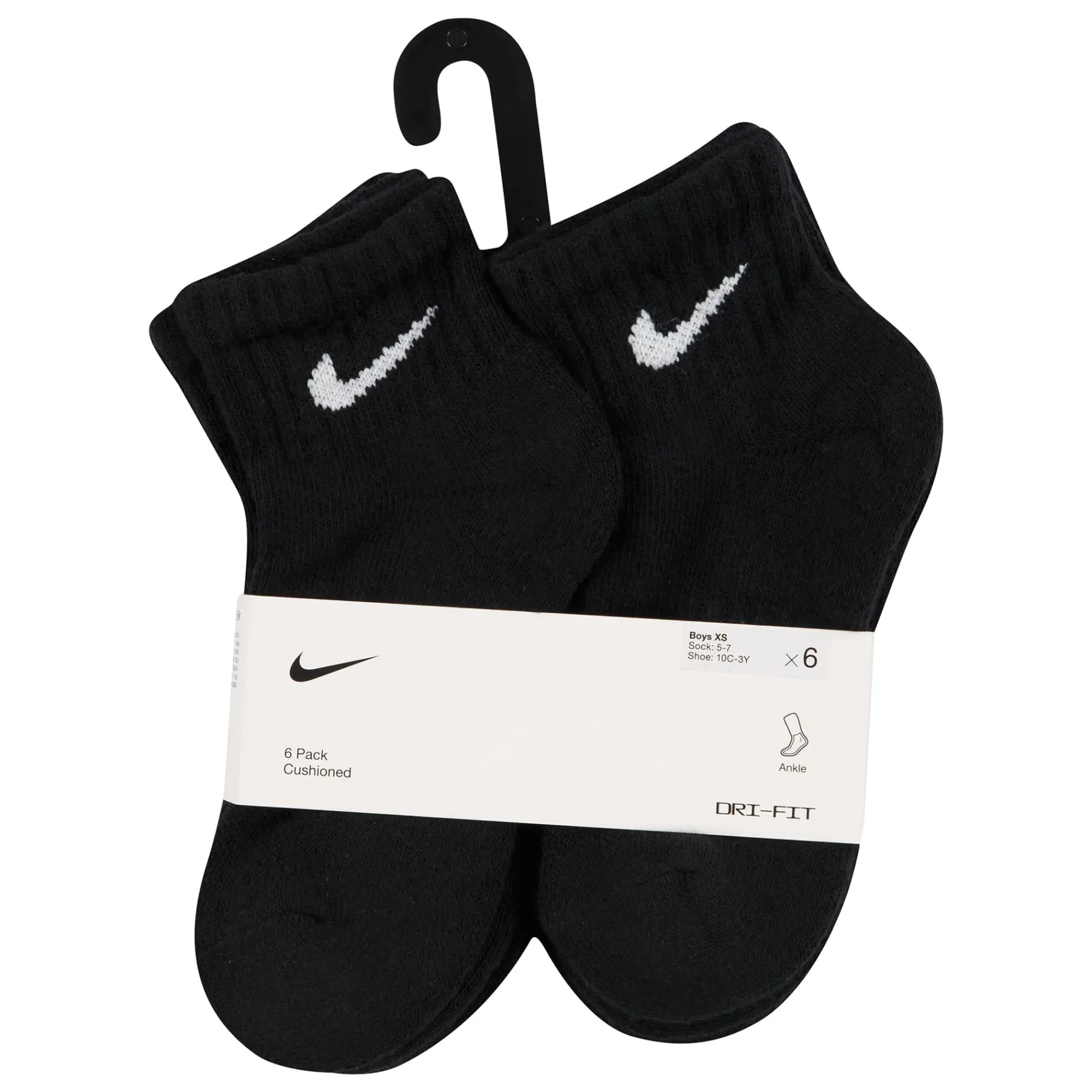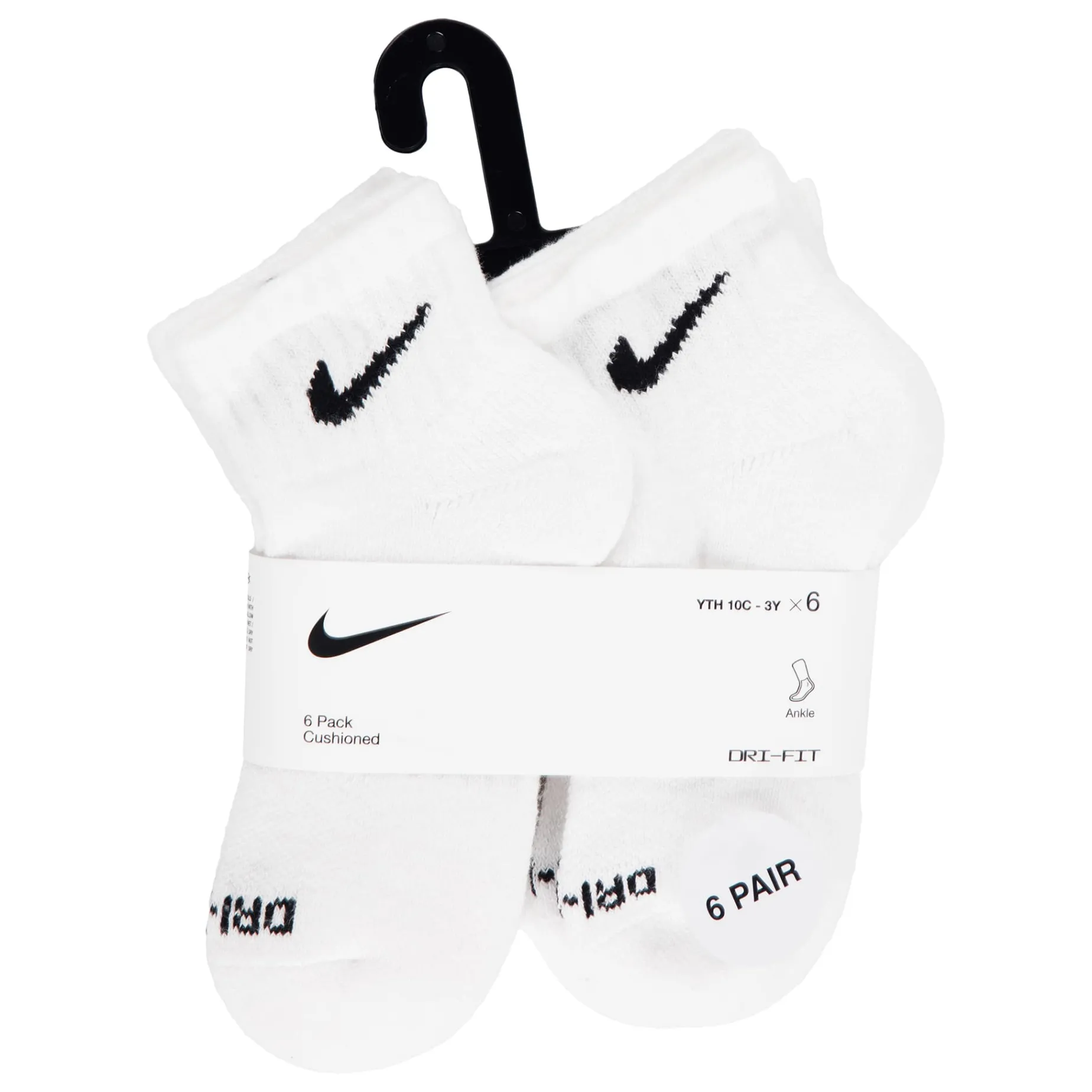 Caractéristiques :Cotton/poly blend in a flat knit construction. Jacquard Swoosh logo detailing on the ribbed cuffs. Moisture-wicking Dri-FIT technology. Breathable mesh upper. Ribbed arch support band. Half cushioned toe/heel/bottom. Includes 6 pairs of crew socks.