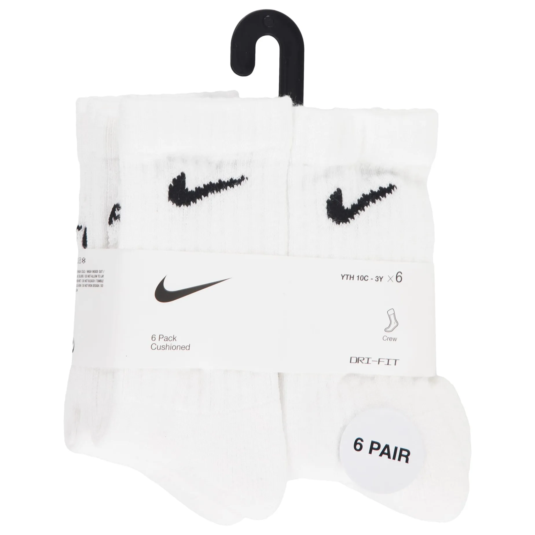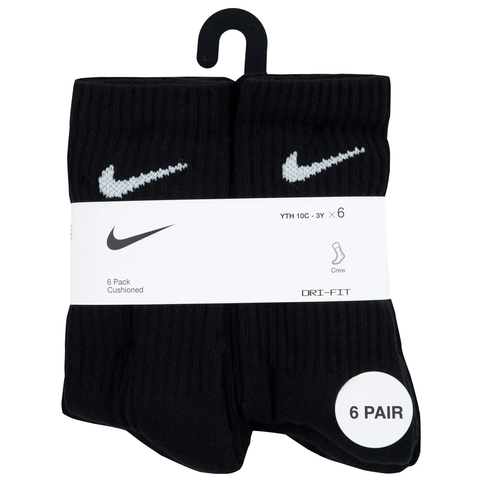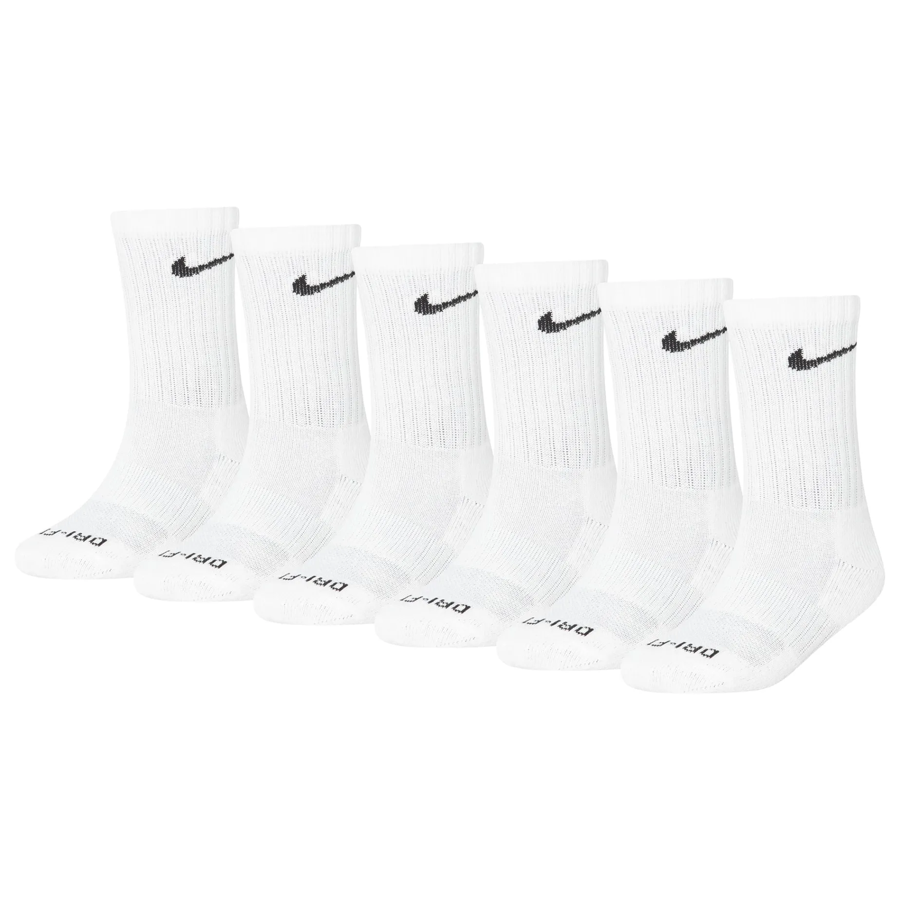Caractéristiques :Cotton/poly blend in a flat knit construction. Jacquard Swoosh logo detailing on the ribbed cuffs. Moisture-wicking Dri-FIT technology. Breathable mesh upper. Ribbed arch support band. Half cushioned toe/heel/bottom. Includes 6 pairs of crew socks.