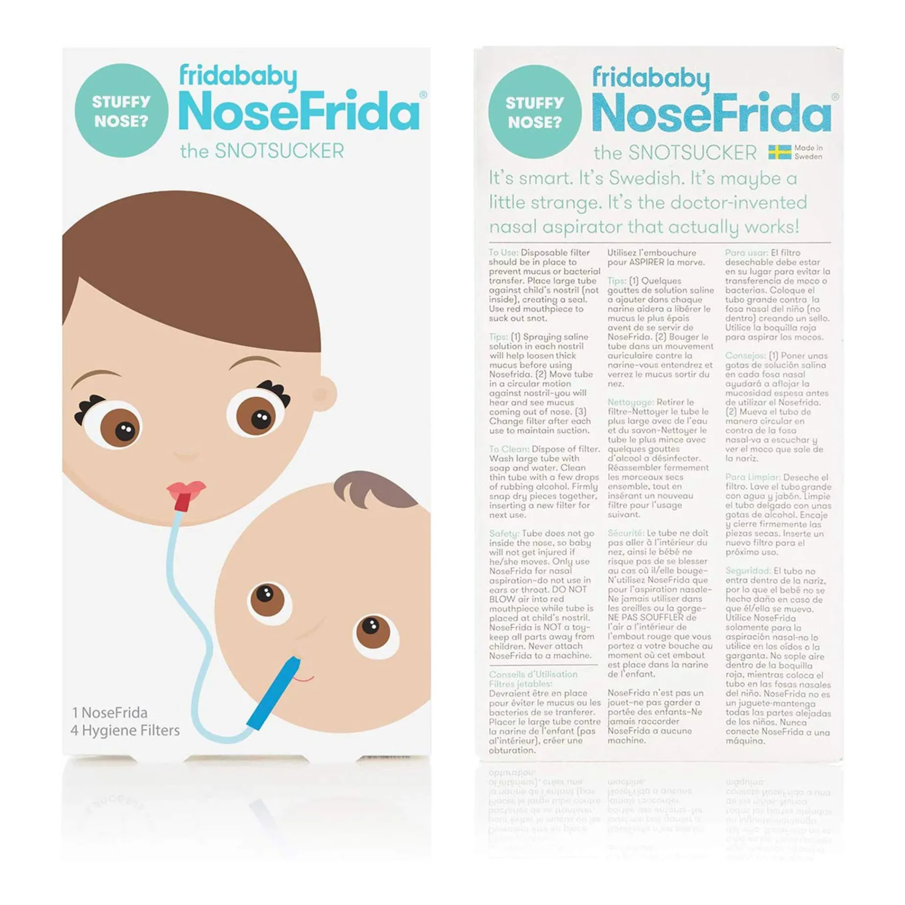 Doctor invented and recommended. Made in Sweden, NoseFrida is your go-to natural, hygienic baby booger buster. It’s totally safe (for parents AND baby), so you can say “sayonara” to snotty noses. NoseFrida is non-invasive and gives the user complete control over how much suction is used. Hygienic filters prevent germs going from baby to parent, helping keep everyone healthy during cold season. What’s Inside? 1 SnotSucker and 4 Filters