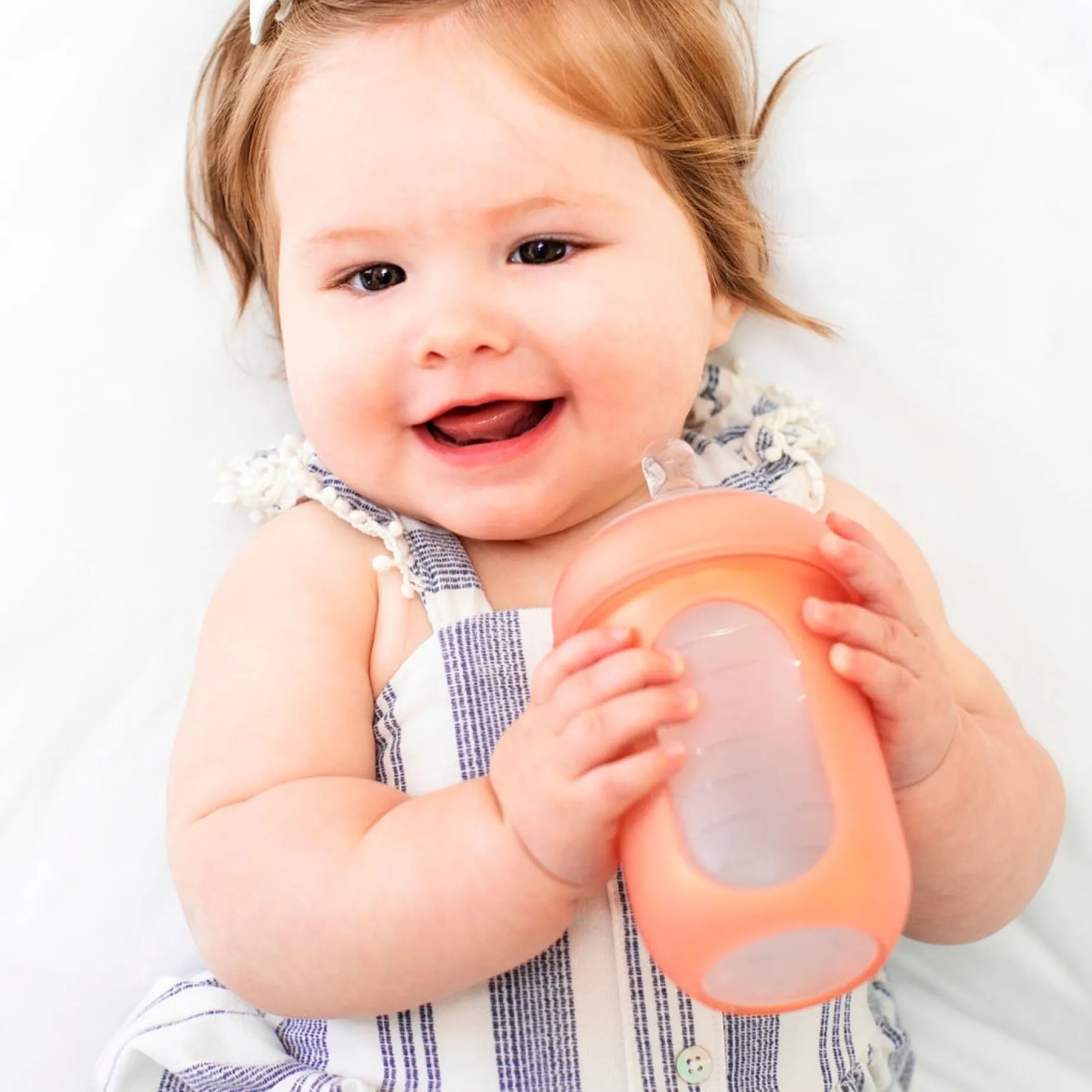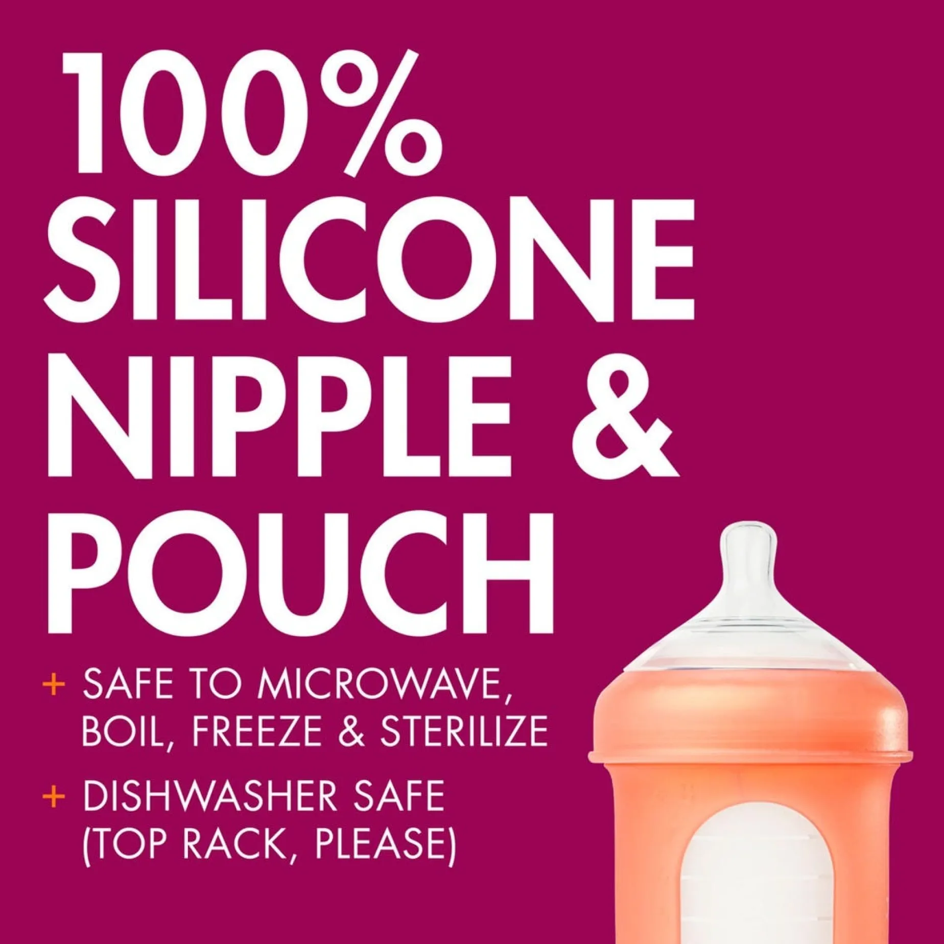The NURSH Silicone Pouch Bottle from Boon features an innovative design that collapses while your baby drinks, pushing out gas-inducing air that causes colic. The easy-to-clean silicone can even be boiled, sterilized, microwaved, and frozen.