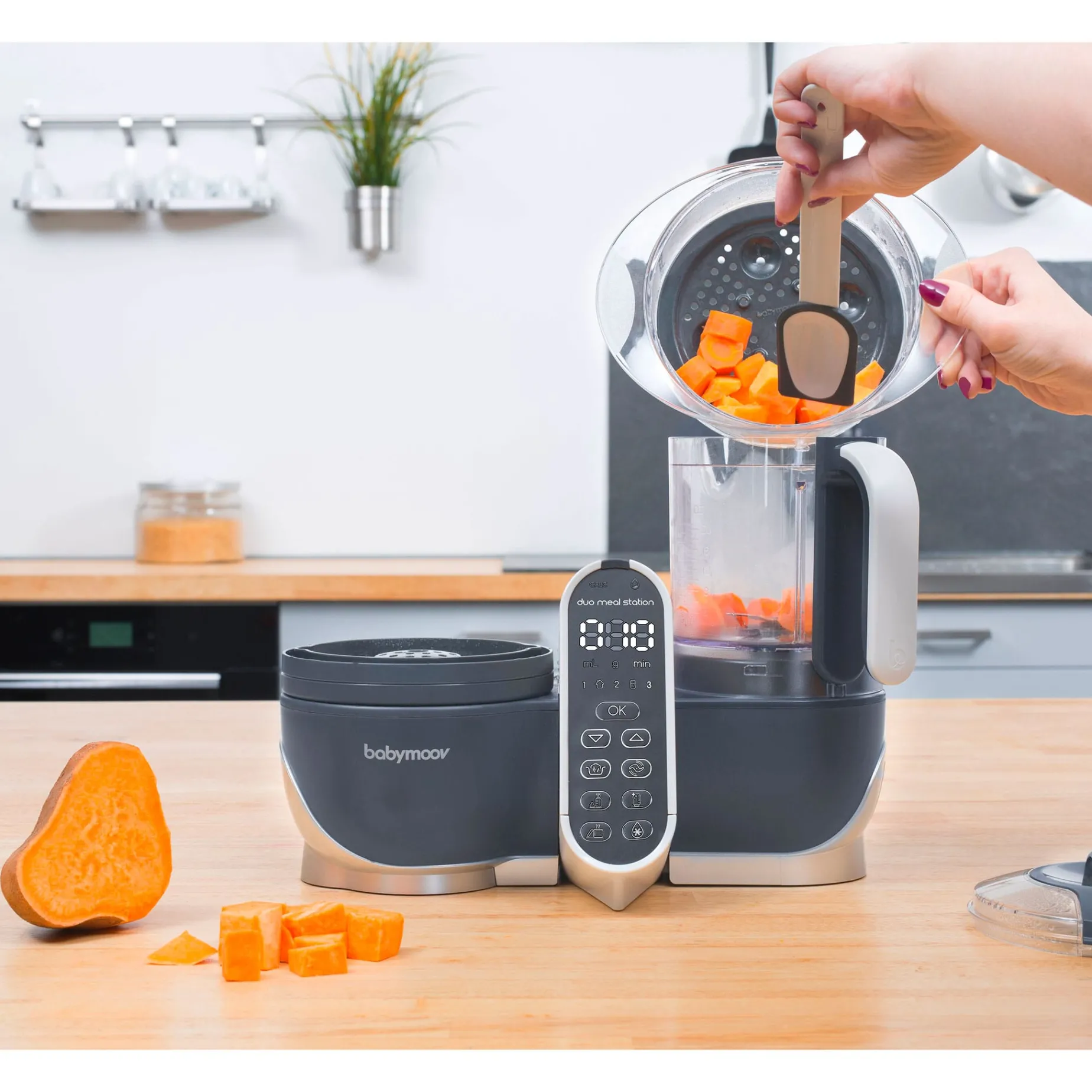 -Equipped with a tactile central console and 10 automatic programs, you will be surprised by the ease of use of the Nutribaby (+): 1 button = 1 function
