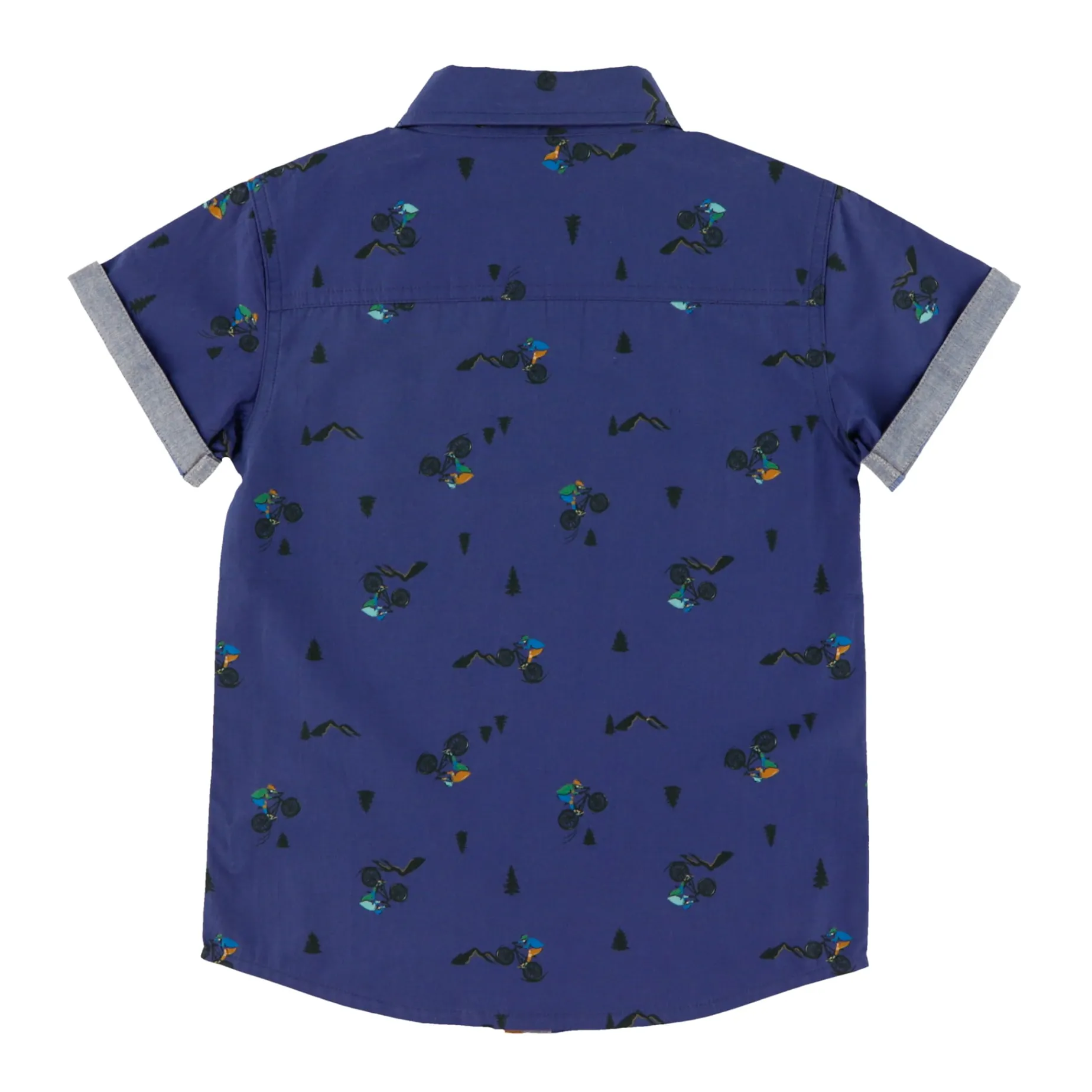 -Printed poplin and chambray shirt