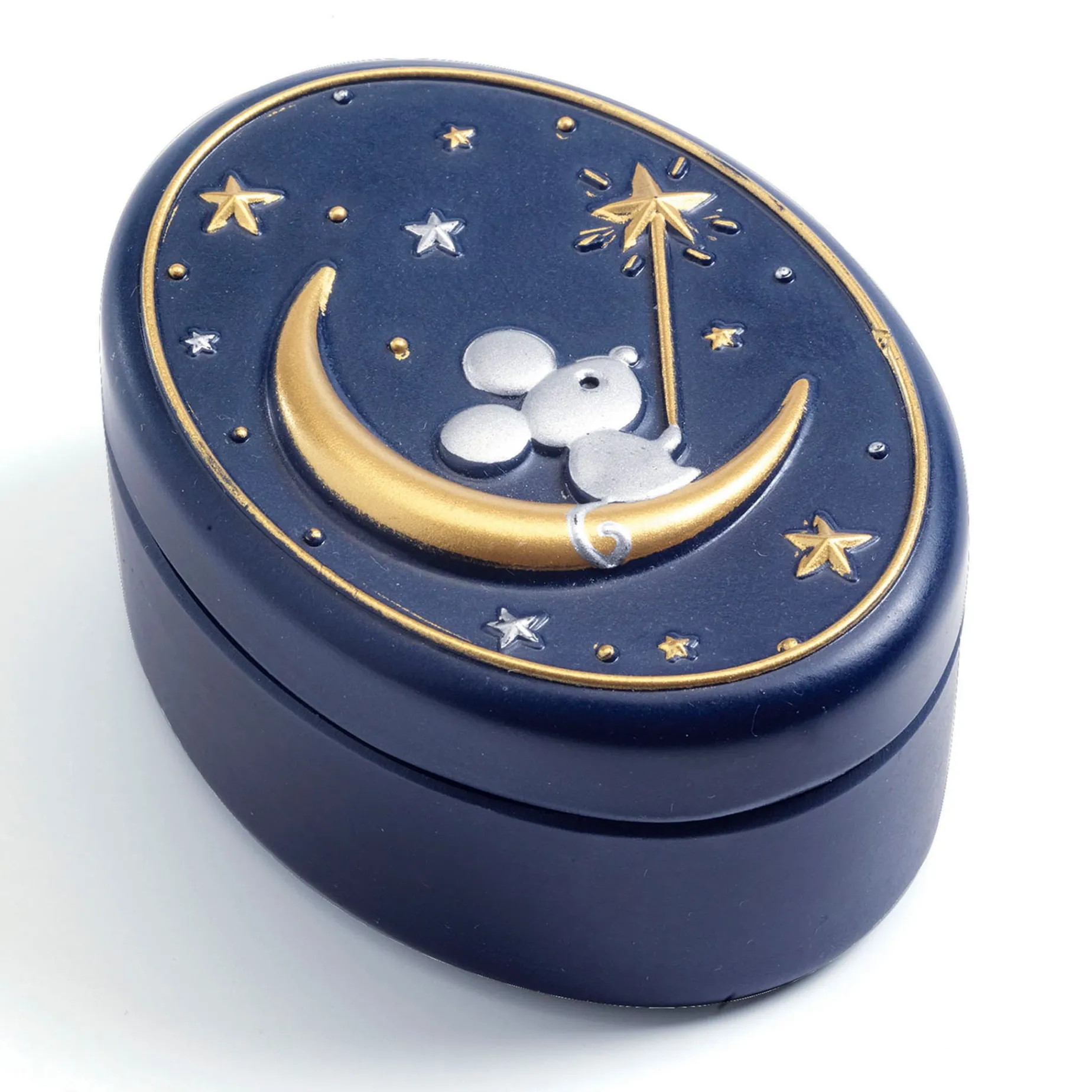 A tooth box with a pretty illustration in relief and in colours that shimmer (silver and gold effect). This box will sit perfectly in the child’s bedroom.