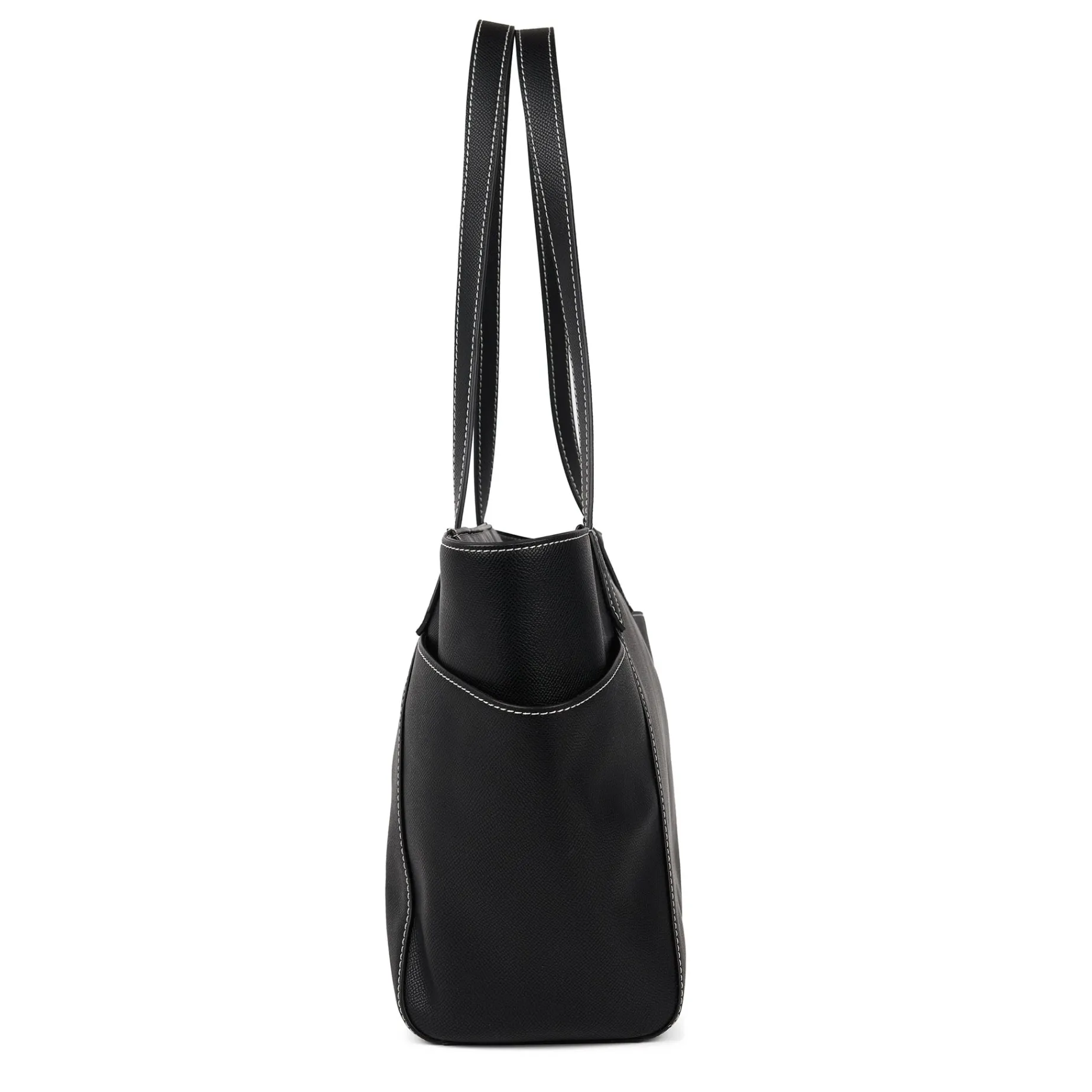 Spacious and structured, the Opale bag in black vegan leather is designed for an active everyday lifestyle. Its generous size makes it easy to carry all your essentials while maintaining a polished, well-defined look. The contrasting stitching adds a refined touch, and the clean design makes it a versatile piece that fits seamlessly into a modern wardrobe.