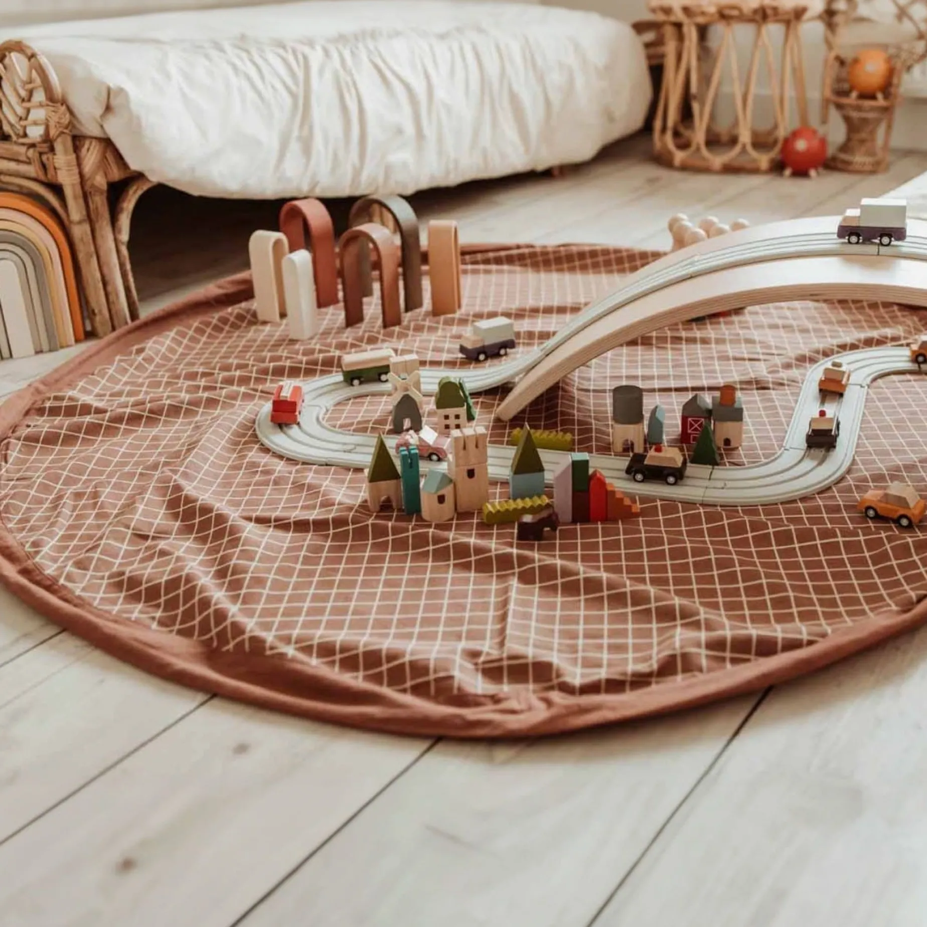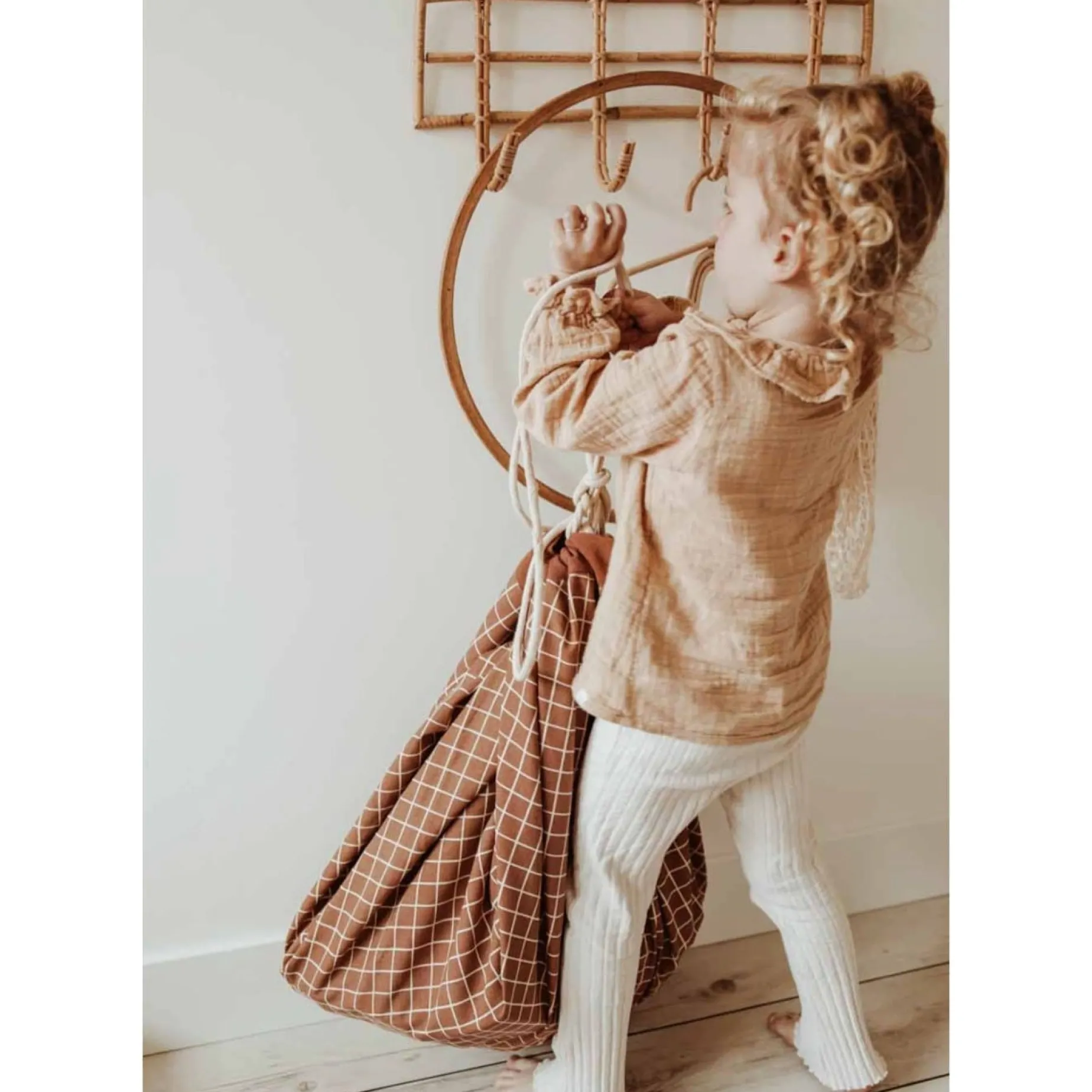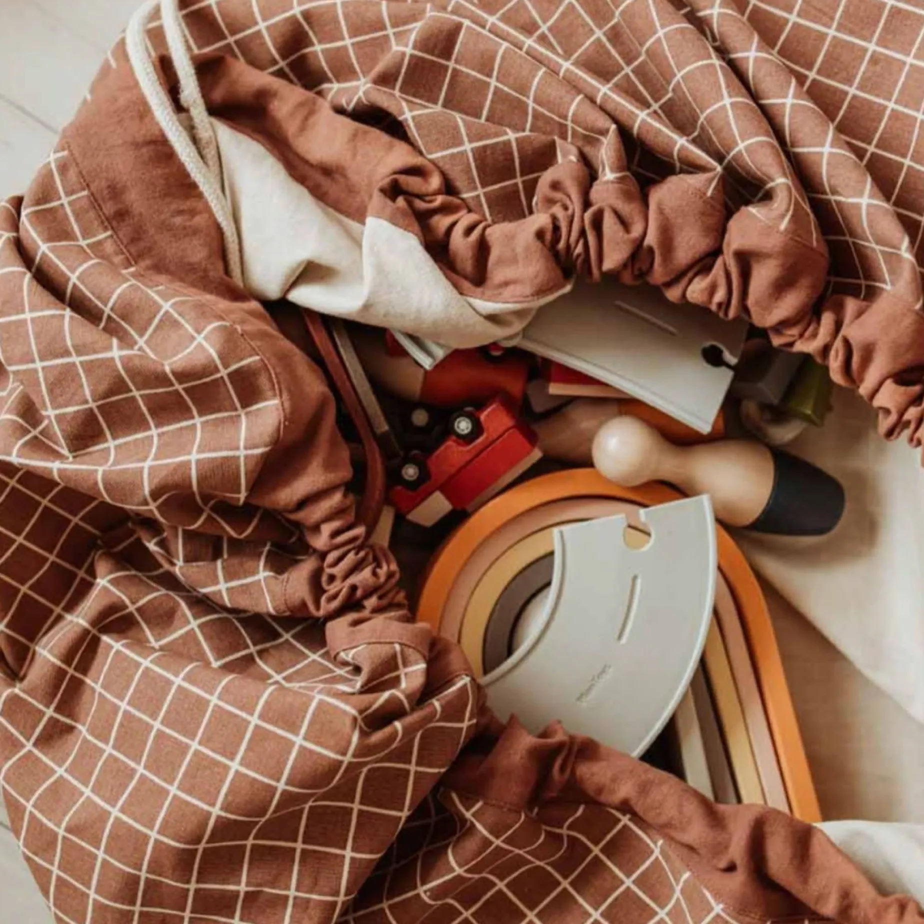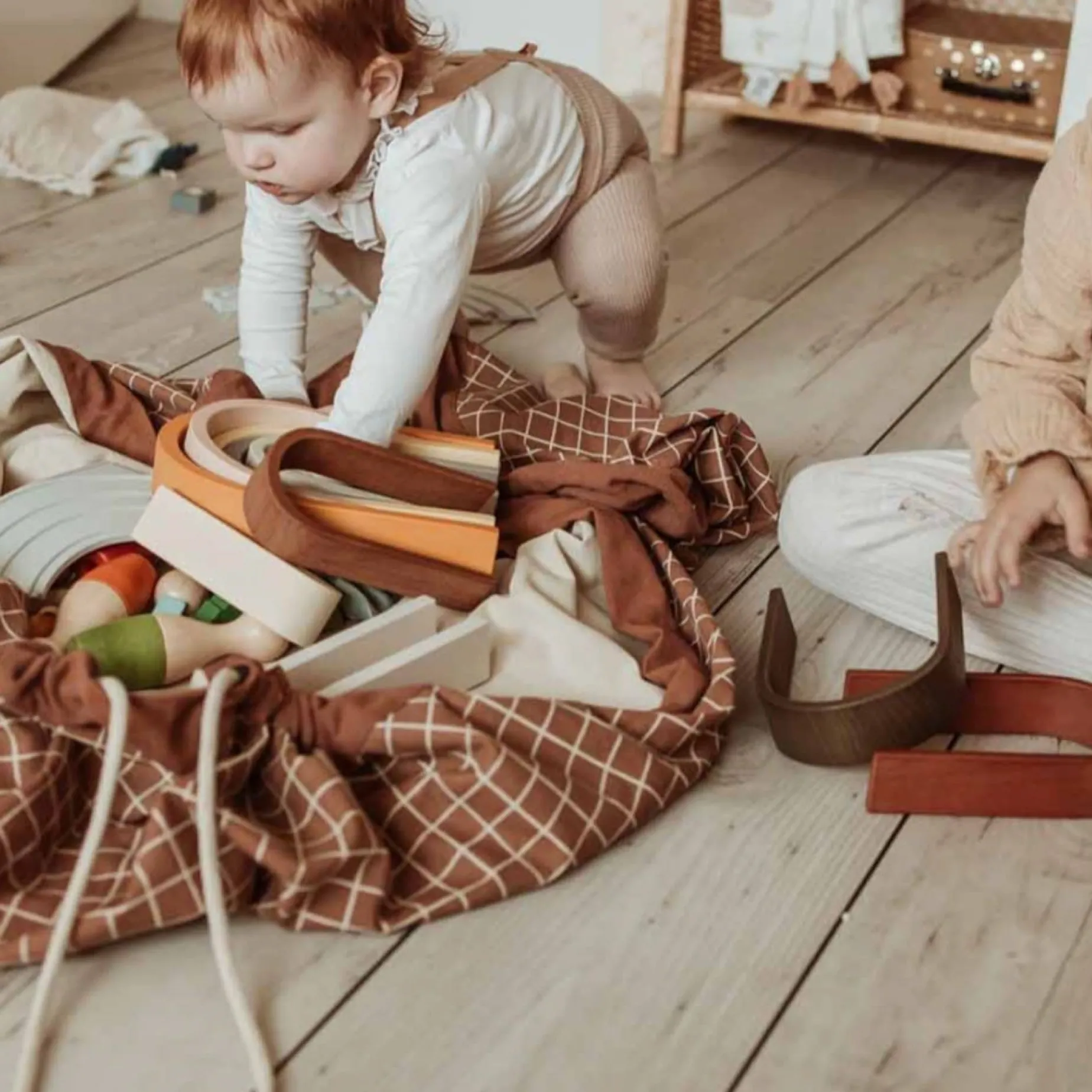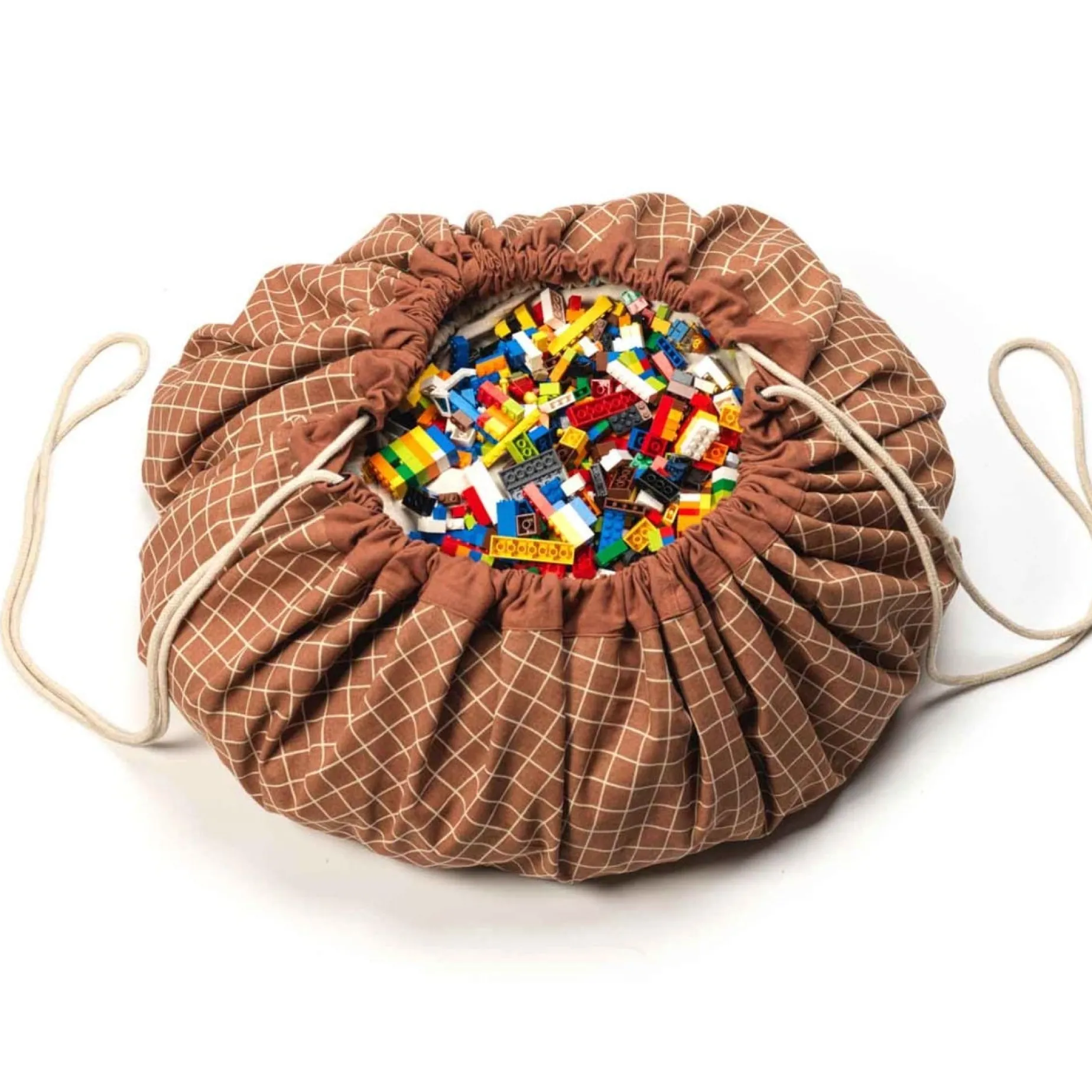 The new mat will add a beautiful touch to any space. This is great, because our Play&Go bag is made to be carried from room to room. Toy storage that looks good, anywhere.