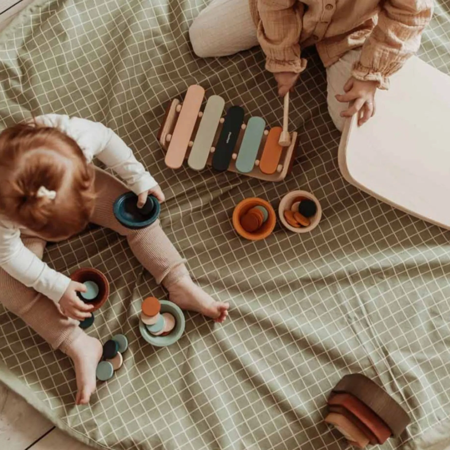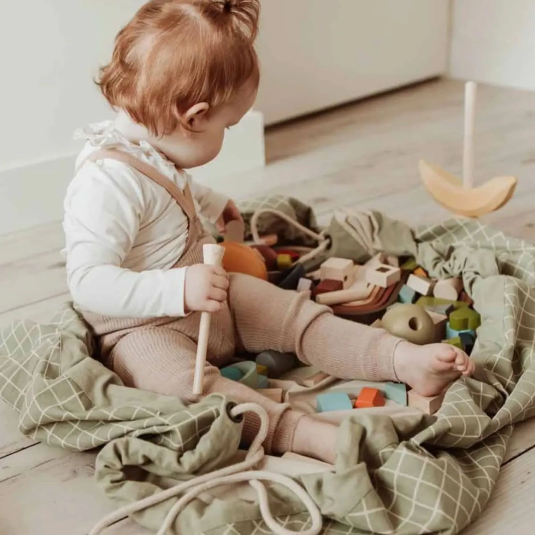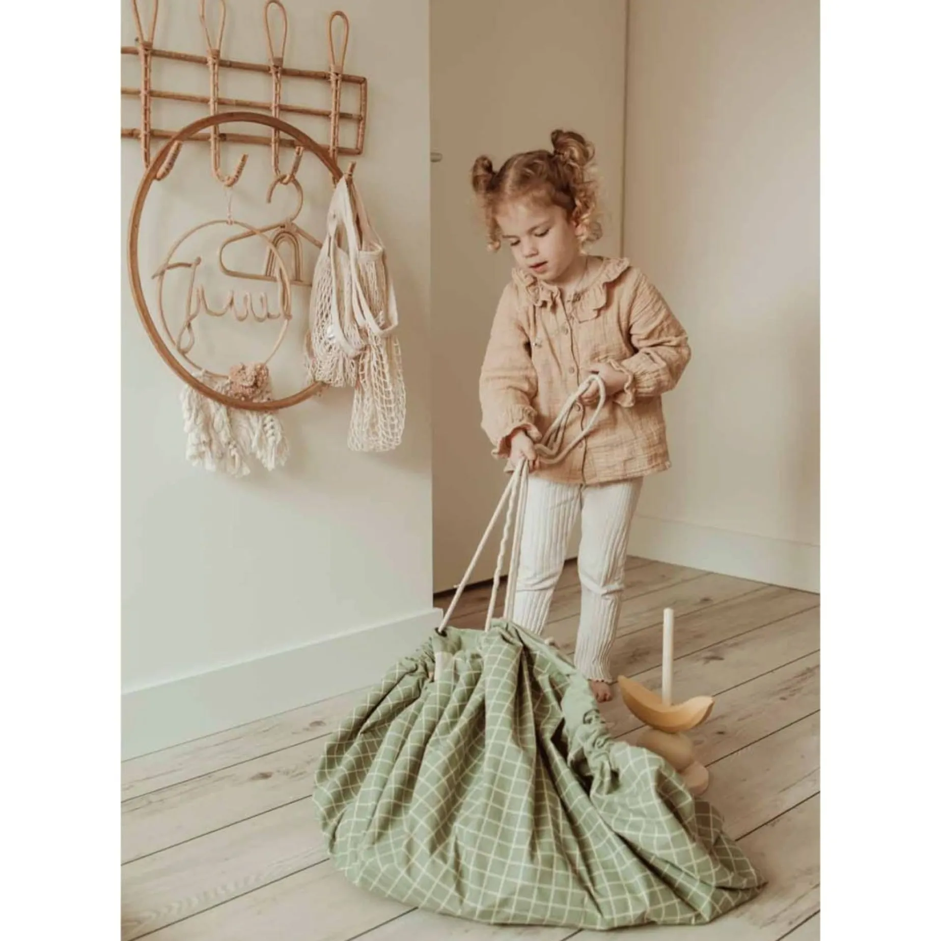The new mat will add a beautiful touch to any space. This is great, because our Play&Go bag is made to be carried from room to room. Toy storage that looks good, anywhere.