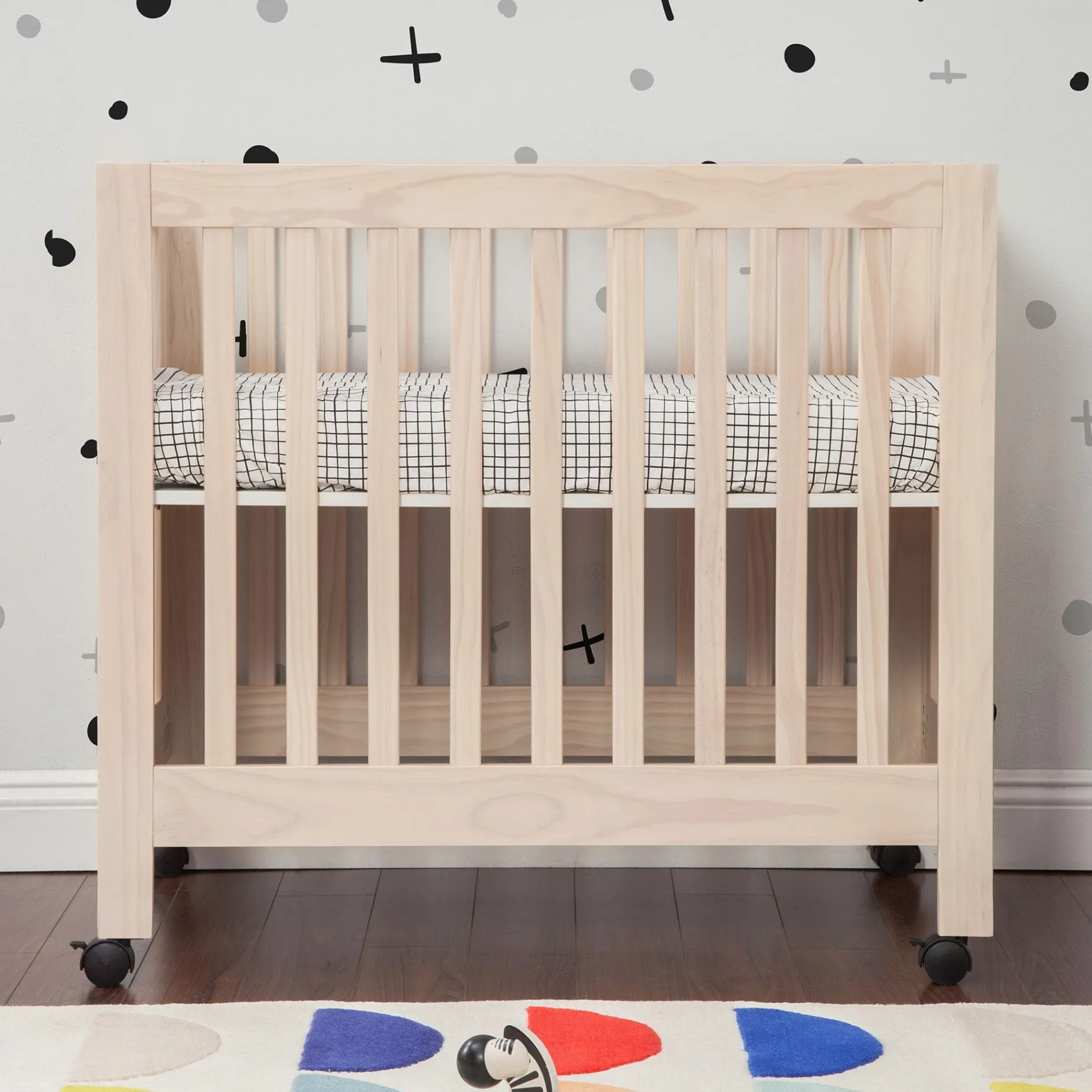 Meet Origami Mini Crib, the portable mini crib designed for modern families. Perfect for urban living or secondary living spaces, the Origami Mini’s petite footprint and rolling feet allow for easy movement throughout the home, and will outlast a bassinet, providing a safe sleeping environment for your growing babe. With a folding mechanism for storage, the sustainable wood construction of the Origami Mini is both durable and lightweight.