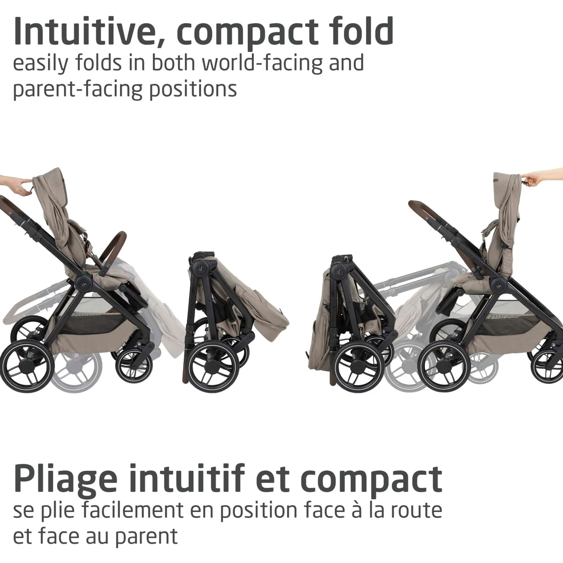 -Four modes: world-facing, parent-facing, and transforms into a travel system with the Maxi-Cosi Mico car seat or Oria (both sold separately)