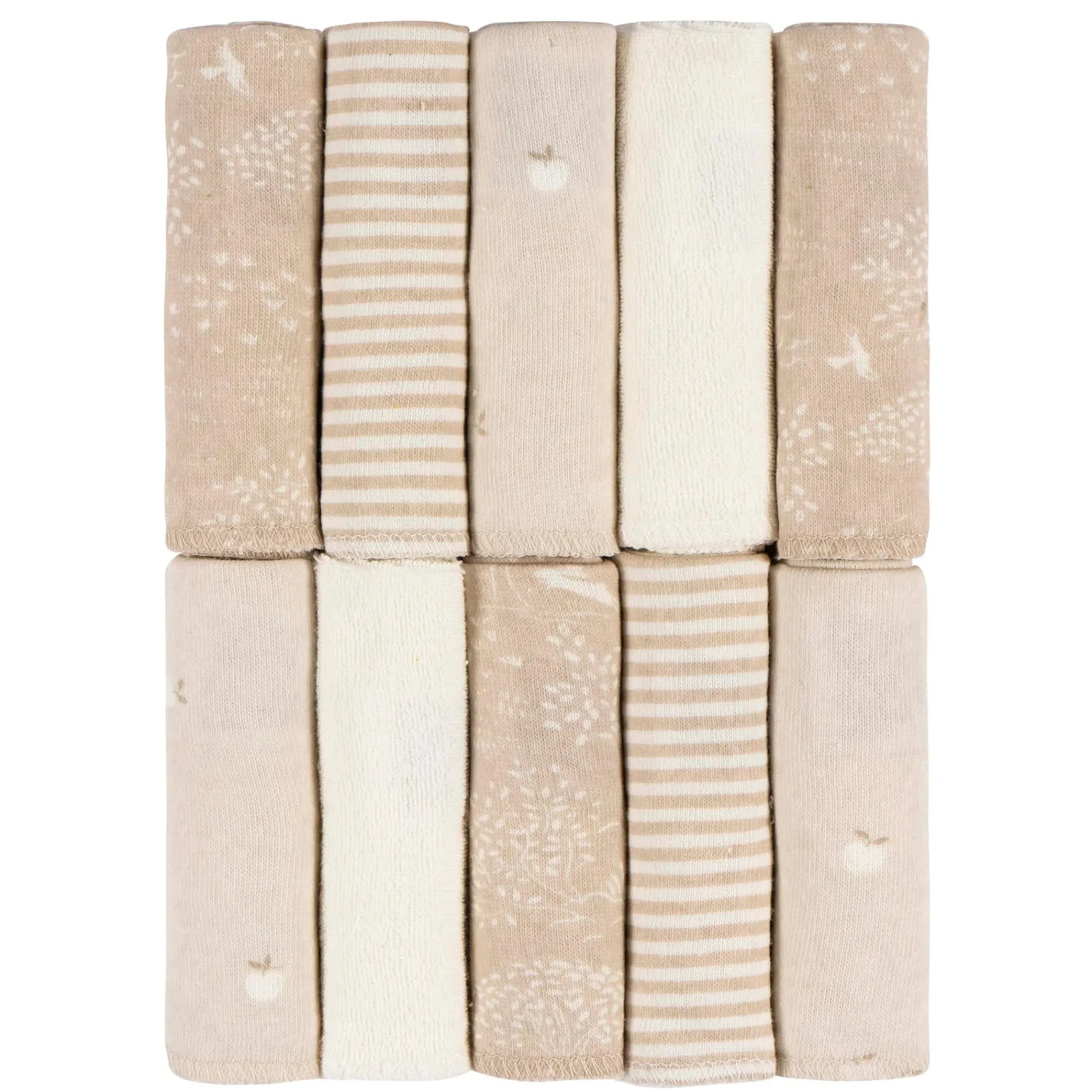 Keep your baby clean and happy with our 10-pack of baby washcloths. Made from soft cotton with plush, absorbent poly knit terry, these washcloths provide a soft touch for cleaning baby. Perfect for bathtime, they’re also handy to keep in your diaper bag for quick cleanups on the go. Ensure your little one is always fresh and comfy with these essential washcloths!