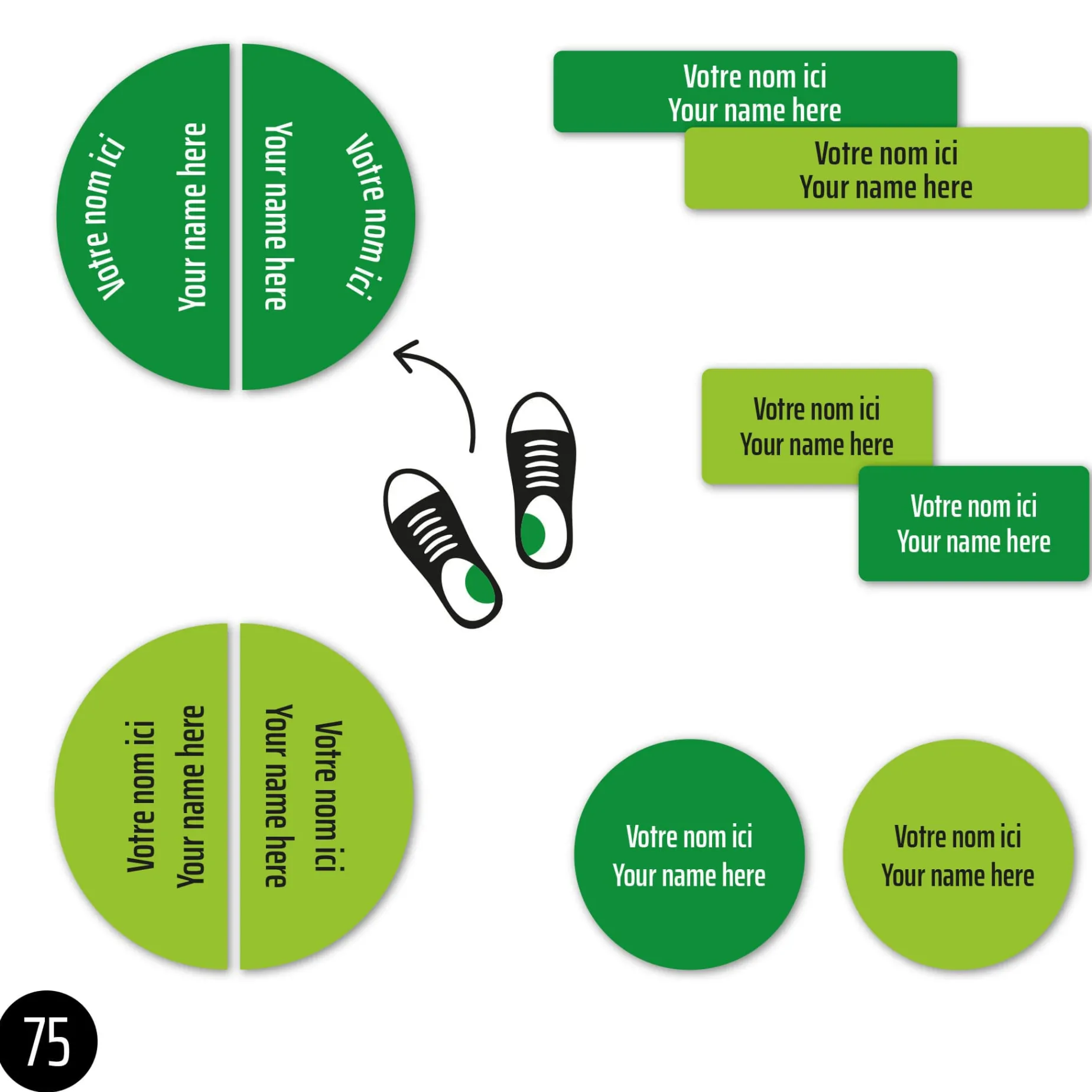 The Mini Edition is ideal for effectively identifying everyday items such as containers, clothing, shoes, and school supplies. This format includes 75 self-adhesive labels in various sizes, including 4 pairs designed specifically for shoes to help children identify the correct foot. Resistant to water, cold, heat, and steam, they are dishwasher, washing machine, dryer, microwave, refrigerator, and freezer safe. No labels require ironing: simply apply them to a clean, dry surface and wait 24 hours before exposing them to moisture or heat. The name and/or phone number is printed on two lines of 16 characters.