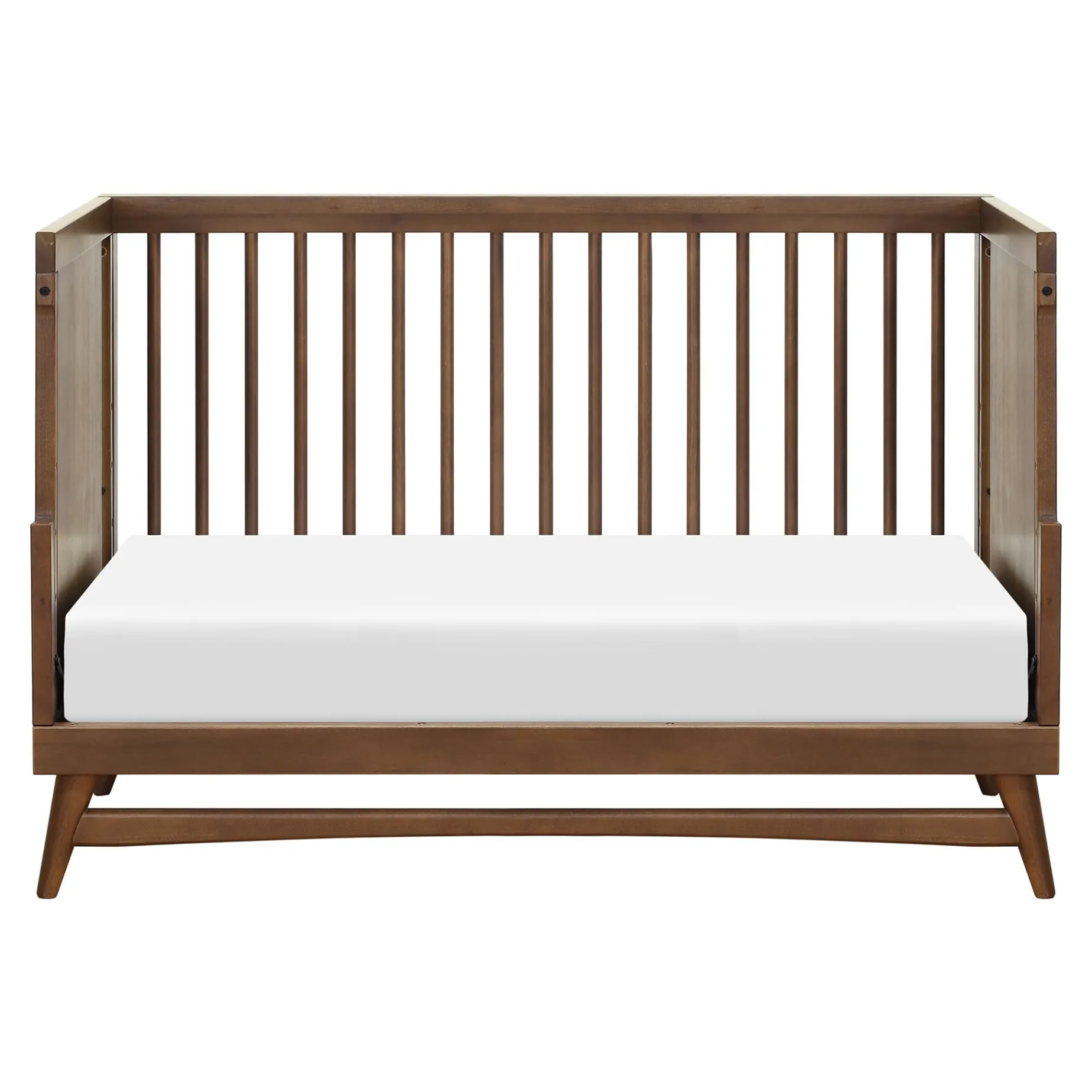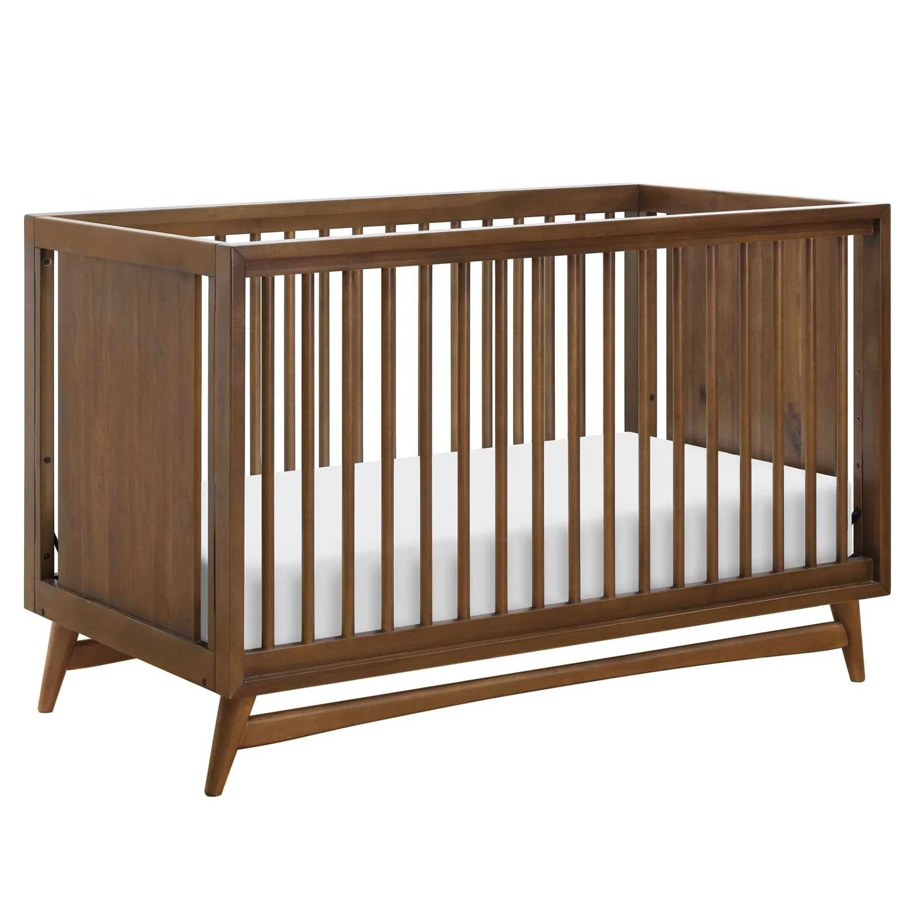 -Refined mid-century modern style: featuring a modern, clean silhouette and classic rounded spindles. flared tapered legs add a playful touch to this sophisticated crib