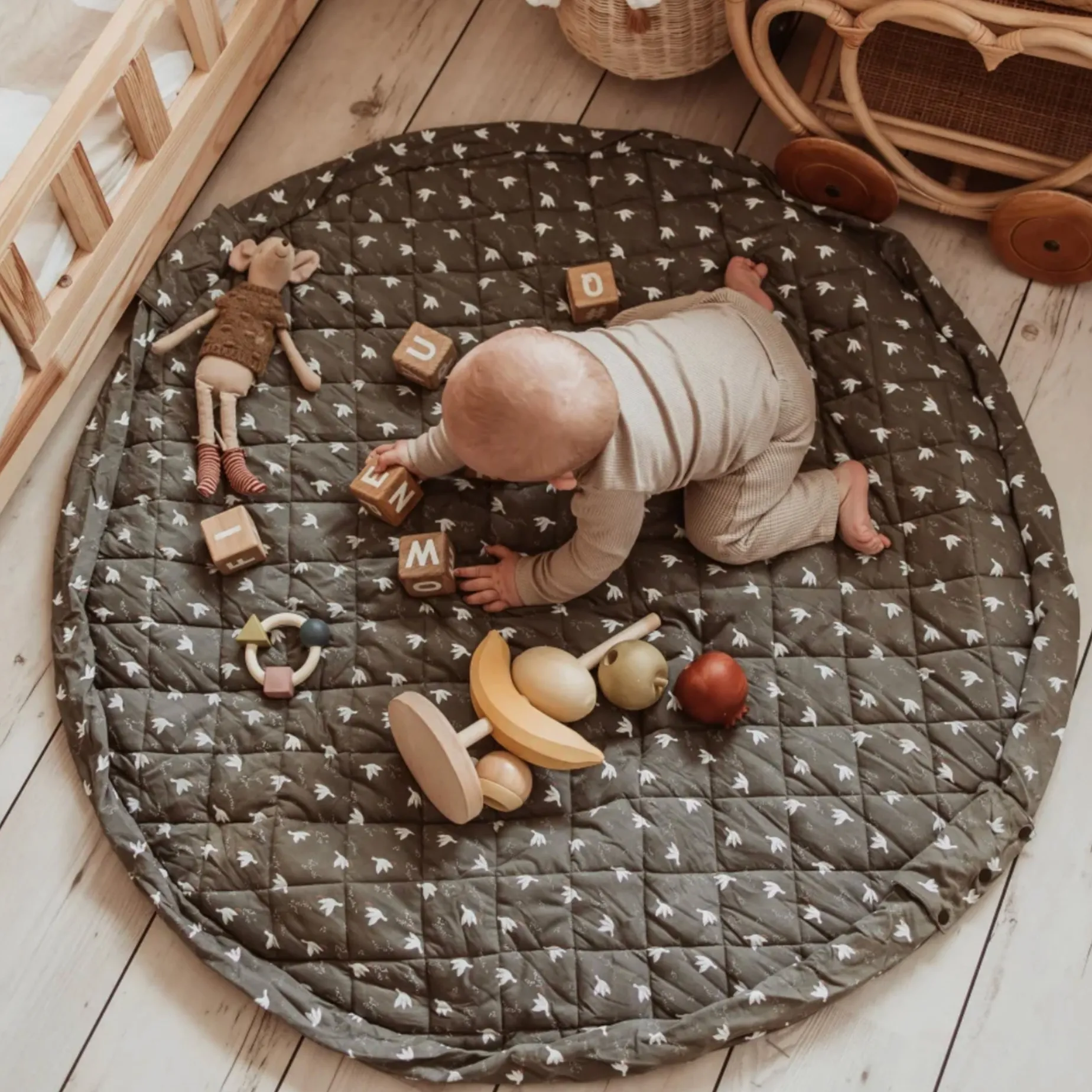 – Effortlessly converts from playmat to storage and diaper bag