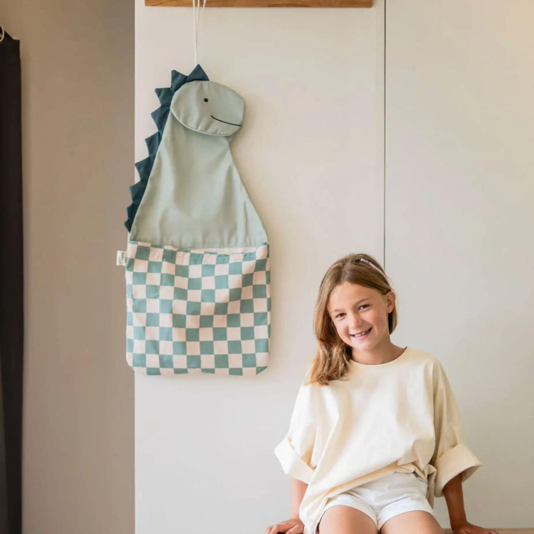 The toto “rabbit” by play&go® is a fun, dinosaur-shaped wall organizer that turns tidying up into an adventure.