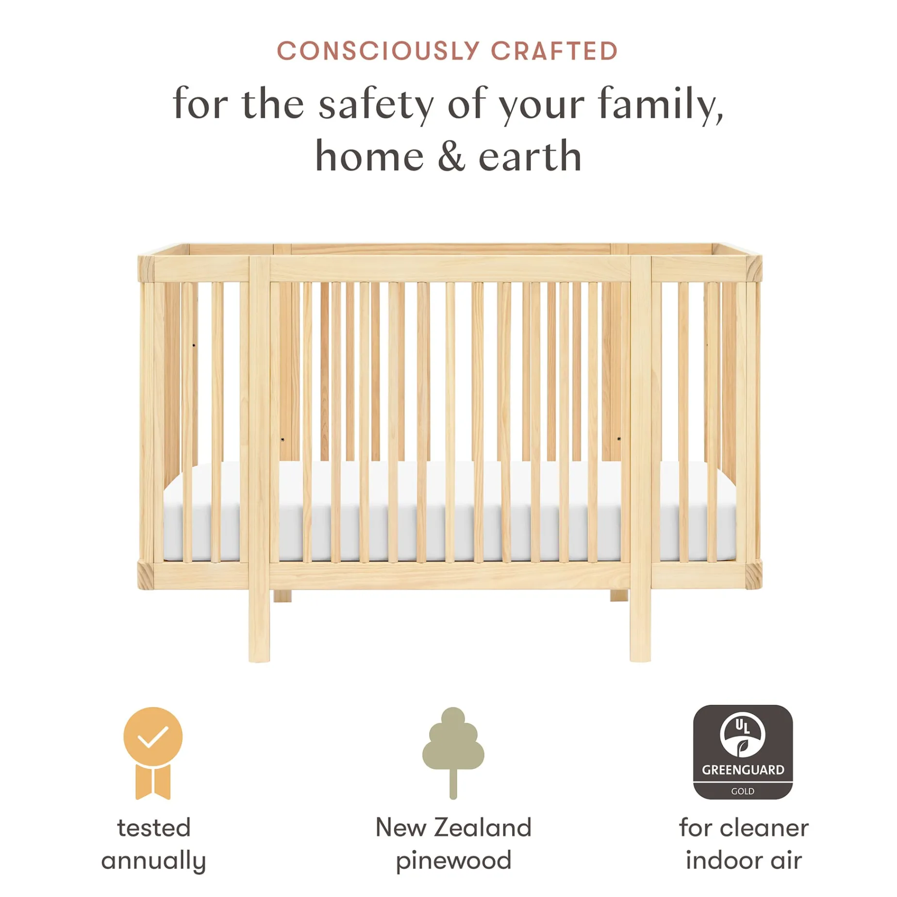 Introducing the latest addition to our All-StagesĀ® category – the versatile Pogo 8-in-1 Convertible All-StagesĀ® Crib. The Pogo seamlessly transforms from bassinet to our transitional midi size and then to a standard full-size crib and junior bed, with all conversion kits included. Choose from two mattress heights and configurations in each size. Featuring stylish rounded spindles, gently curved corners and posts, the Pogo is made with 100% sustainable New Zealand pine wood and certified GREENGUARD Gold for your baby’s safety.