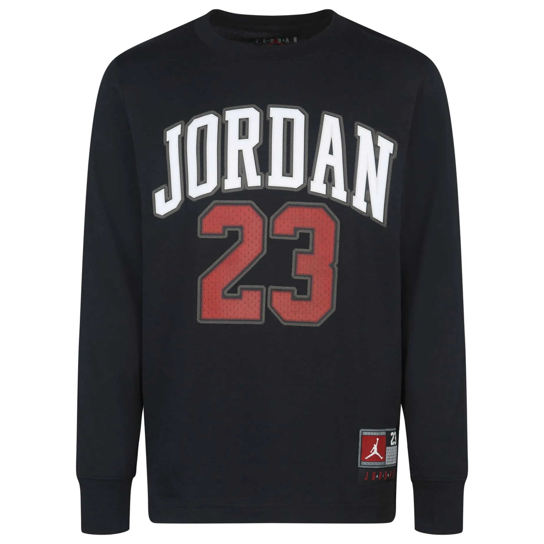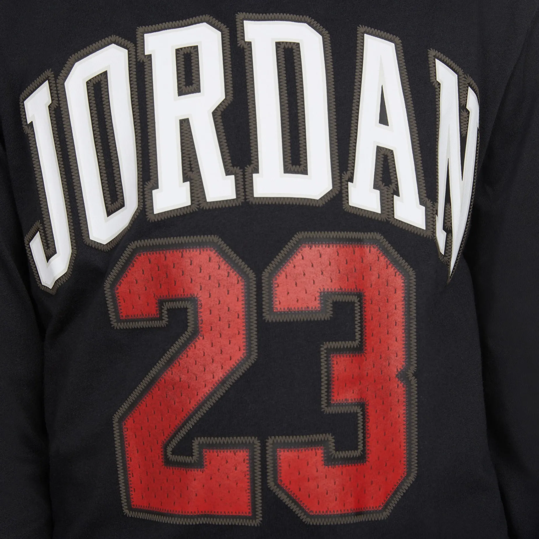 Whether your kiddo is going to team practice, to class, or to hang with friends, this sport jersey inspired tee from Jordan will fit the bill. It’s made of soft cotton/poly jersey, the tagless crewneck provides comfy wear and the long sleeves have ribbed cuffs to add cozy, lightweight warmth.