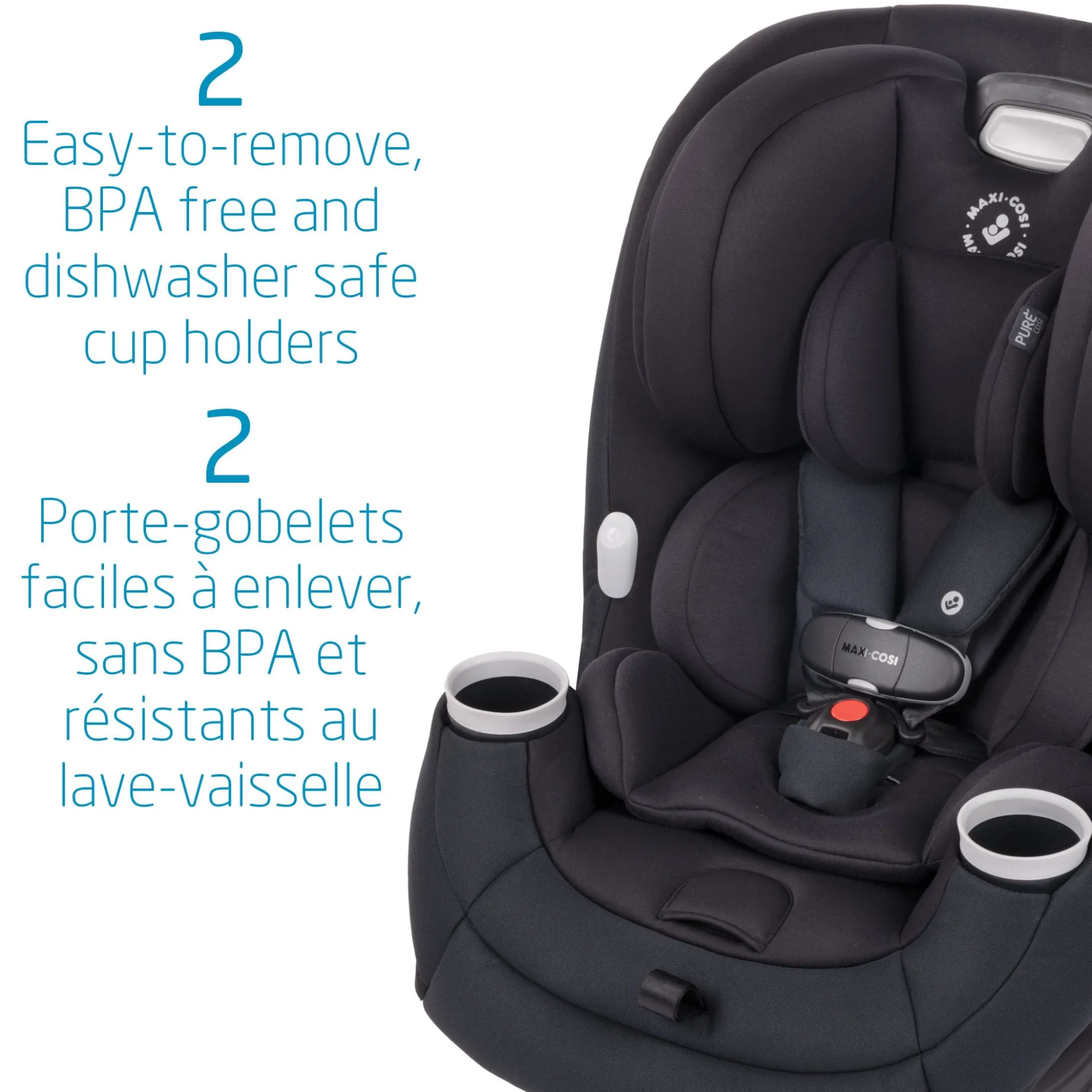 -All-in-One seating system: rear-facing, from 4-40 pounds; forward-facing to 65 pounds; and up to 100 pounds in booster mode.