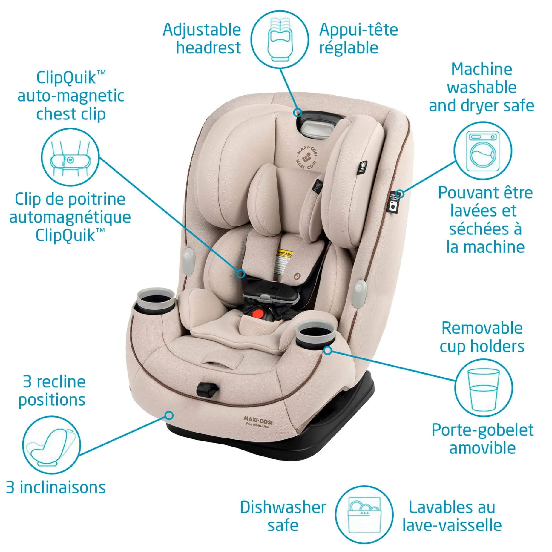 -All-in-One seating system: rear-facing, from 4-40 pounds; forward-facing to 65 pounds; and up to 100 pounds in booster mode.