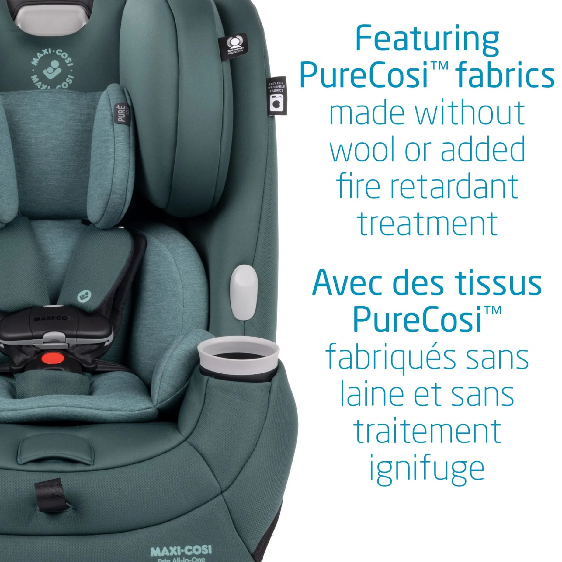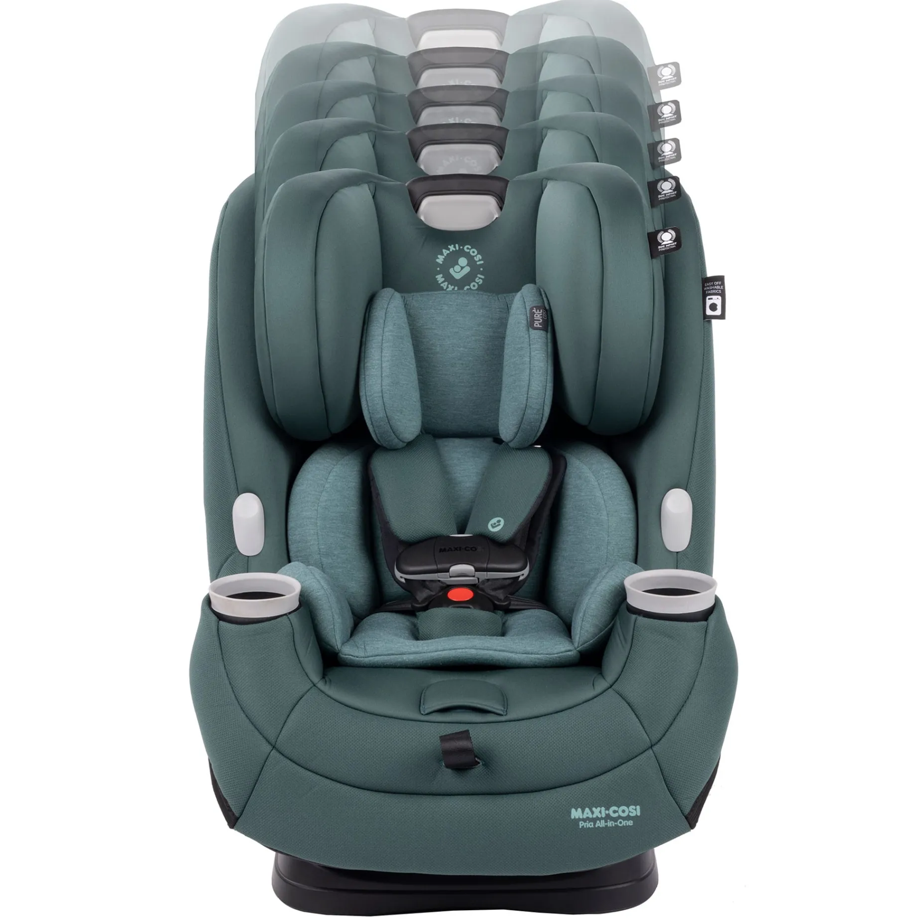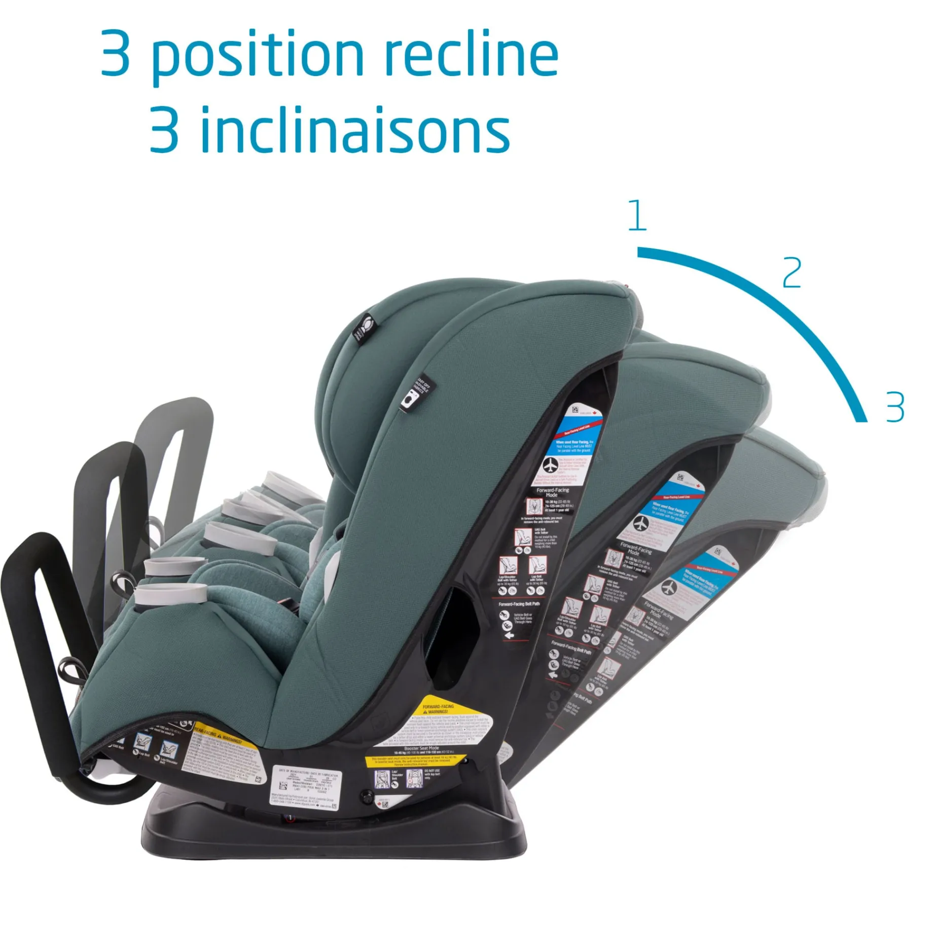 -All-in-One seating system: rear-facing, from 4-40 pounds; forward-facing to 65 pounds; and up to 100 pounds in booster mode.