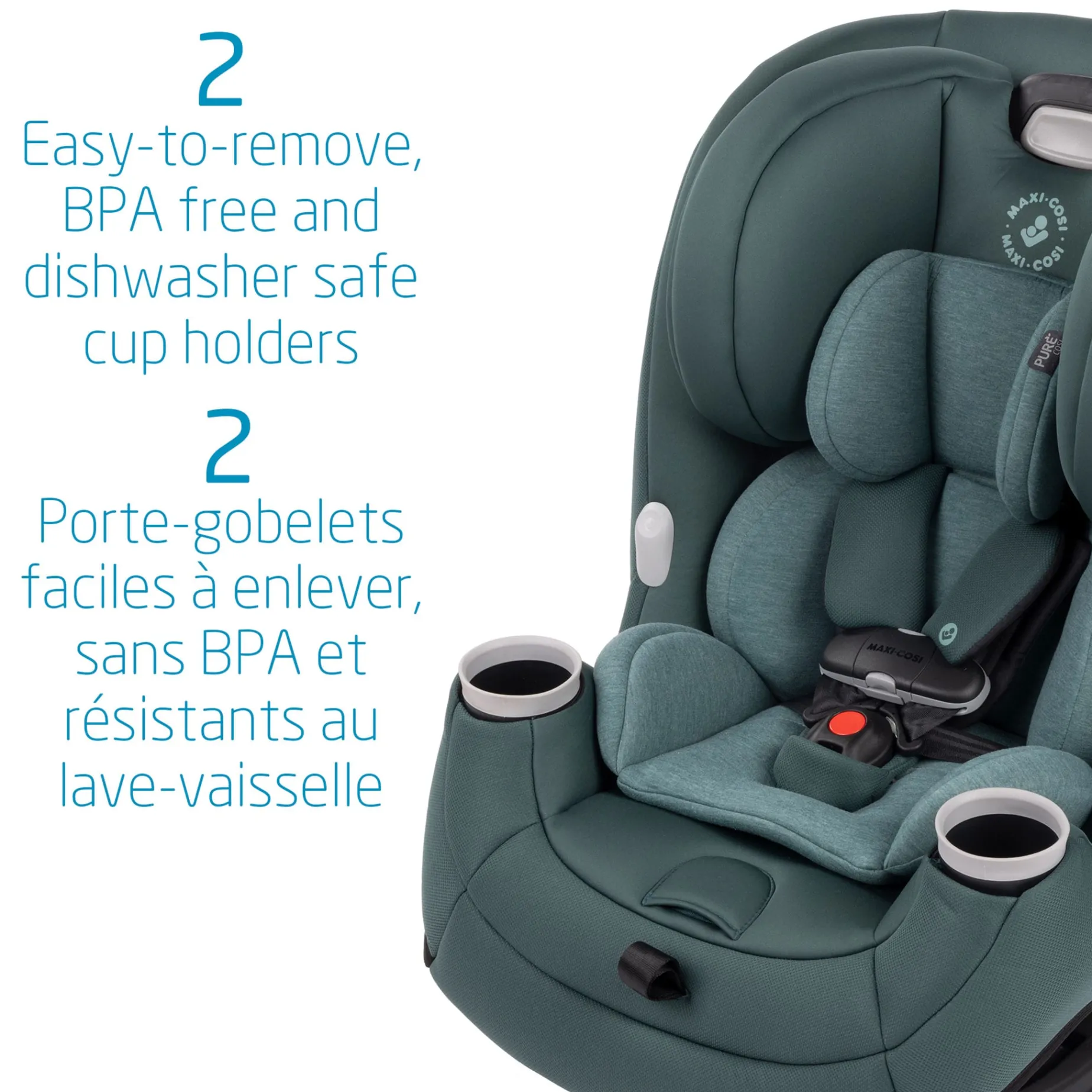 -2 easy-to-remove, BPA free and dishwasher safe cup holders