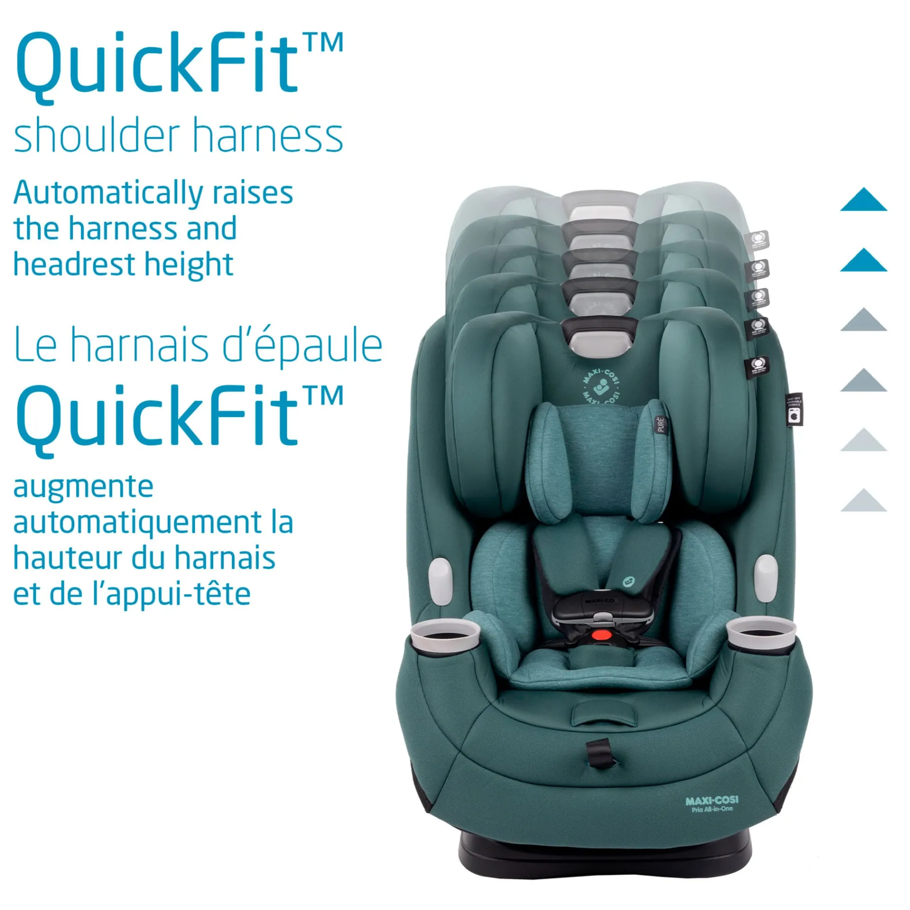 -QuickFit shoulder harness automatically raises the harness and headrest height.