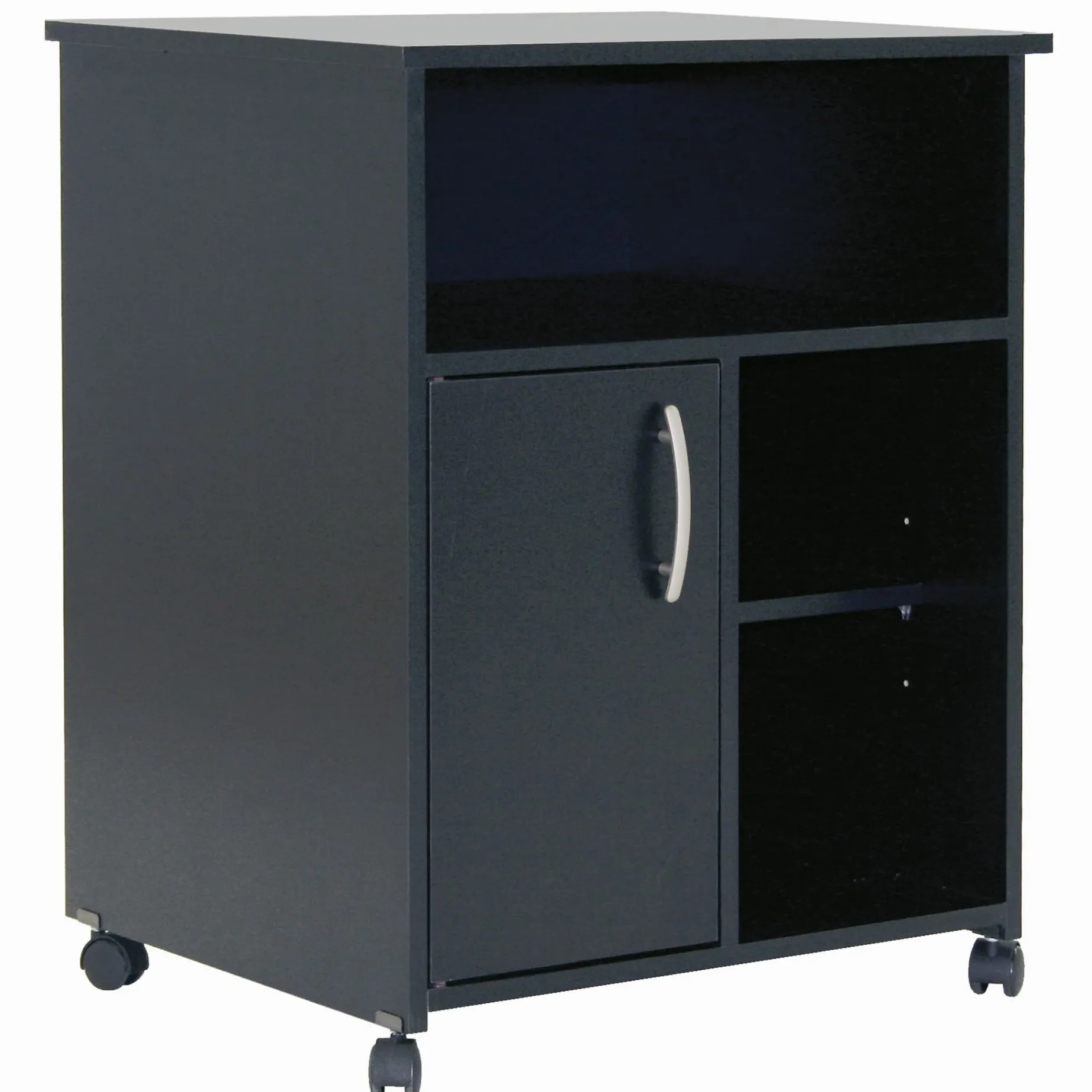 A trendy little piece that’s easy to move The 4 wheels on this little piece make it very easy to move around the room. You can shift it from one end of your office to the other, depending on where you’d like to have it at any given time! The fairly simple Contemporary style, with clean lines and metal handles that set it apart, will also look attractive in any decor for years to come.