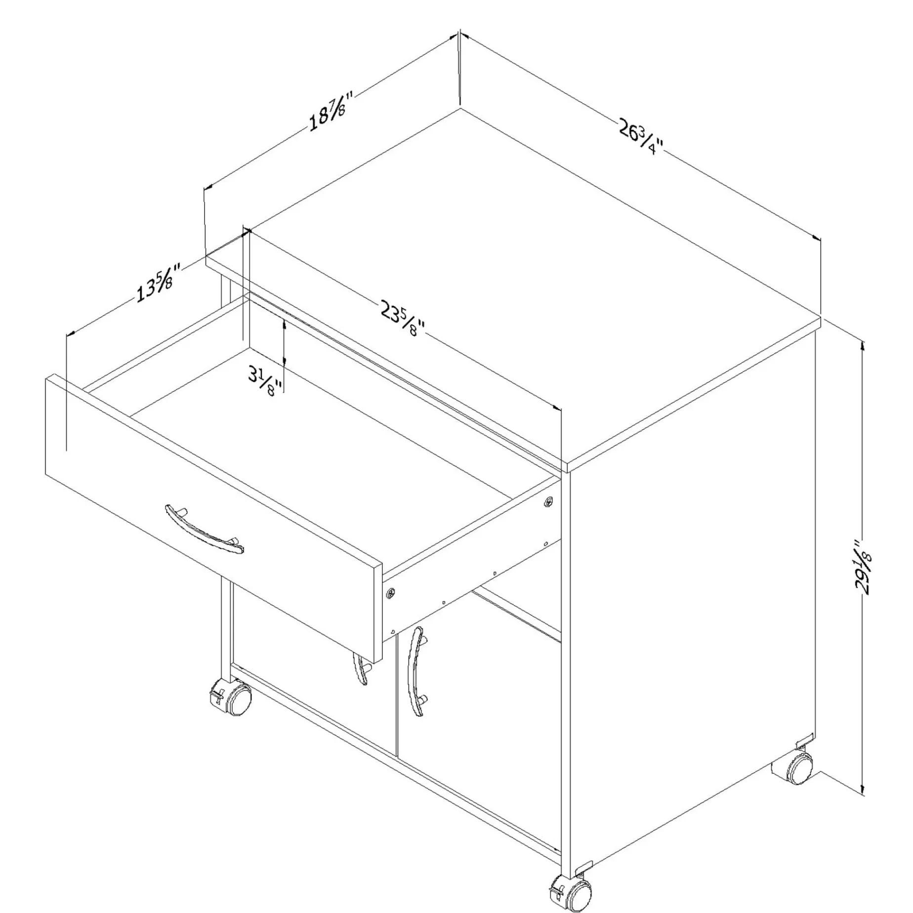 A versatile look The straight lines on this product give it a Contemporary look, so you can be sure it’ll go with the furniture you already have. The drawer and cabinet doors feature rounded plastic handles. The Axess printer stand with storage is ideal for creating a neat and tidy workspace, where everything is put away!