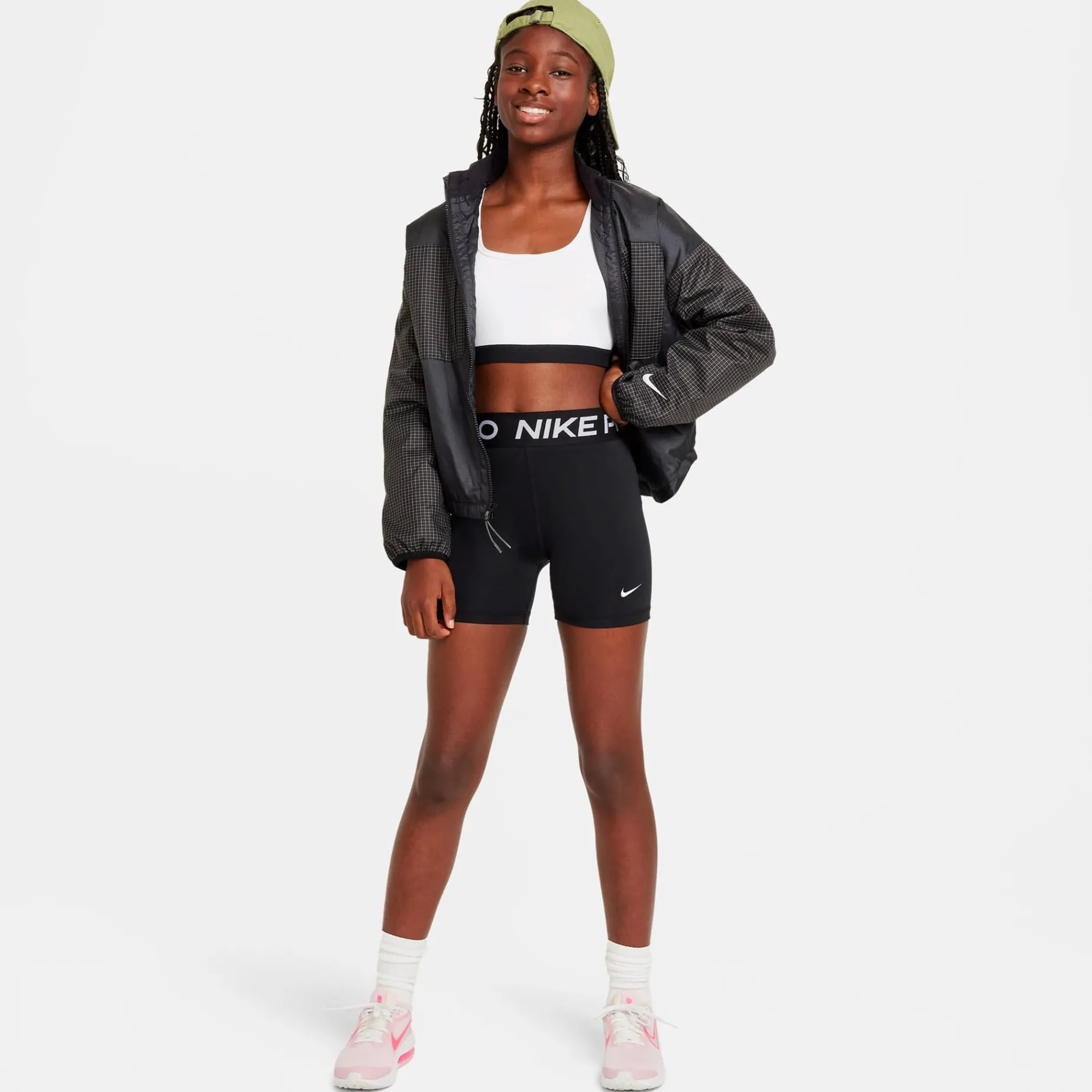 The Nike Pro Shorts are a super-duper stretchy, supportive layer that can be worn alone, or under your shorts or uniform. Add in Dri-FIT technology and sweat has no chance. Fabric : Body: 83% polyester/17% spandex. Gusset Lining: 100% polyester.