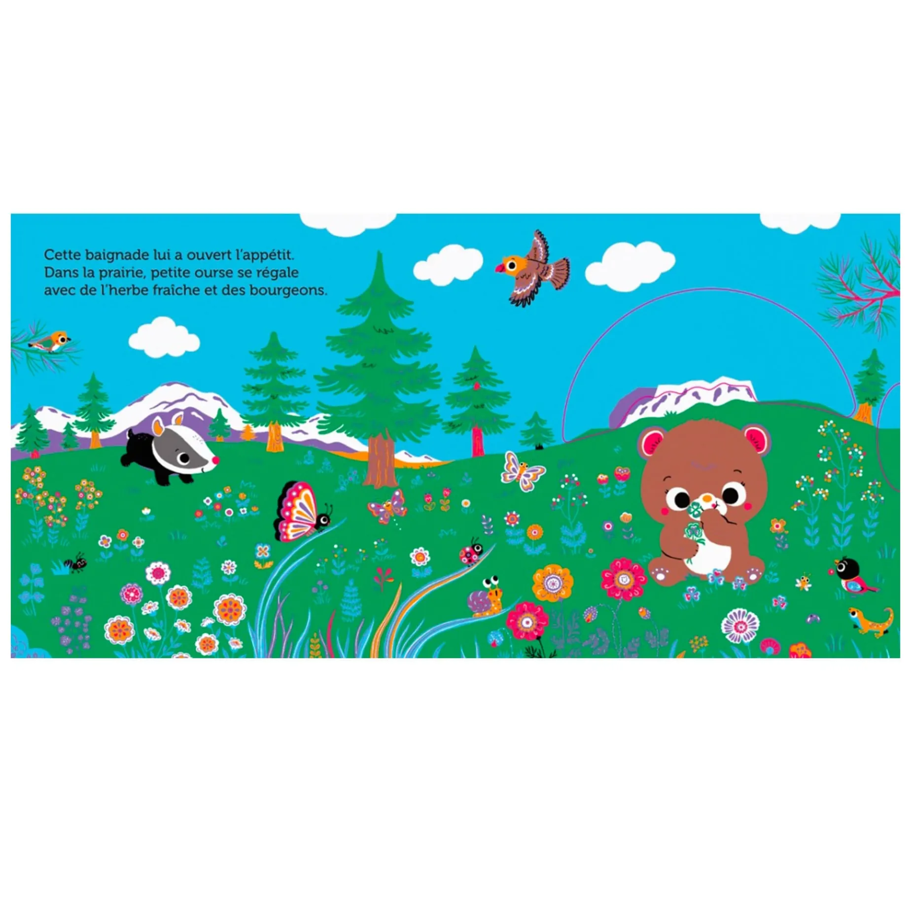 Suivez les aventures de petite ourse dans la nature ! Un livre animé aux illustrations poétiques et aux reflets argentés qui captive les tout-petits dès leurs premiers mois. Petit ourse s’éveille au printemps : de la tanière à la rivière, en passant par la prairie fleurie, les tout-petits découvrent un univers enchanteur rehaussé de délicats effets argentés.