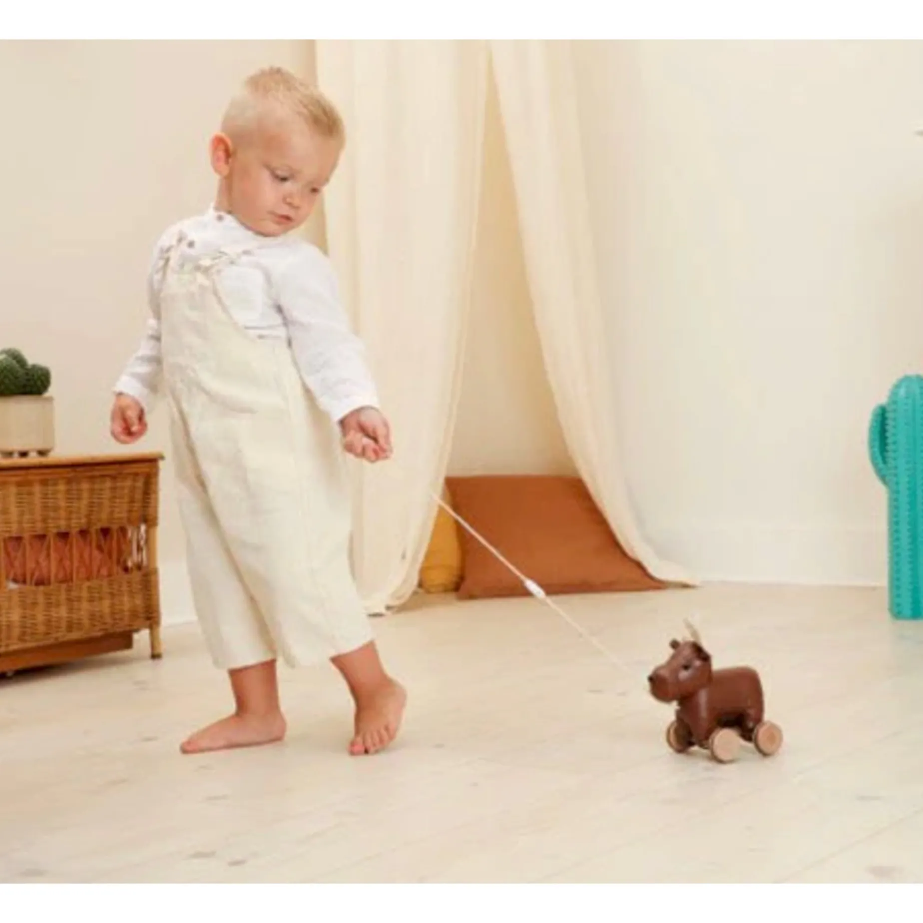 Animal friends who will follow baby everywhere! Their adorable retro look and supple, soft texture will make them one of your child’s favorite toys. The double cord with detachable safety buckle keeps the animal at the right distance and adapts to the growth of the child